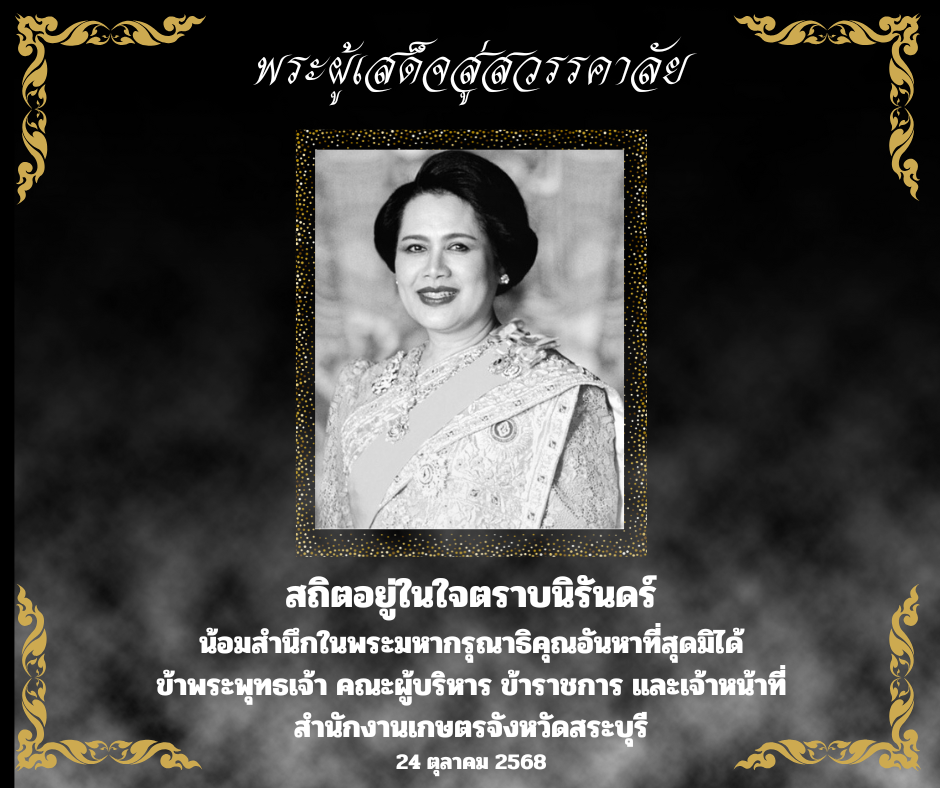 เกษตรจังหวัดสระบุรี : เข้าร่วมพิธีบำเพ็ญกุศลทักษิณานุปทาน อุทิศถวายพระราชกุศล แด่ สมเด็จพระนางเจ้าสิริกิติ์ พระบรมราชินีนาถ พระบรมราชชนนีพันปีหลวง สัตตมวาร ( ๗ วัน )
