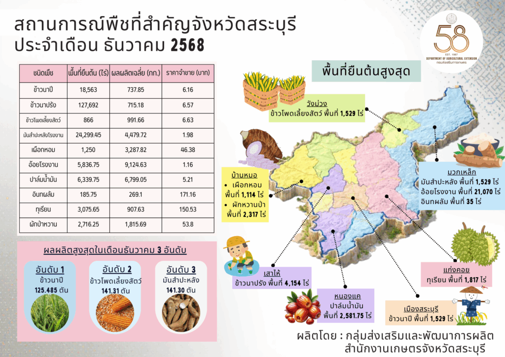 สถานการณ์พืชที่สำคัญของจังหวัดสระบุรี, เทคโนโลยี นวัตกรรมการผลิตพืชสถานการณ์พืชที่สำคัญ ของจังหวัดสระบุรี ประจำเดือนธันวาคม 2568 กลุ่มส่งเสริมและพัฒนาการผลิต / 16/12/2025
