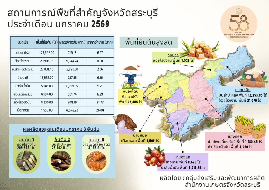 สถานการณ์พืชที่สำคัญของจังหวัดสระบุรี, เทคโนโลยี นวัตกรรมการผลิตพืชสถานการณ์พืชที่สำคัญ ของจังหวัดสระบุรี ประจำเดือนมกราคม 2569 กลุ่มส่งเสริมและพัฒนาการผลิต / 16/01/2026