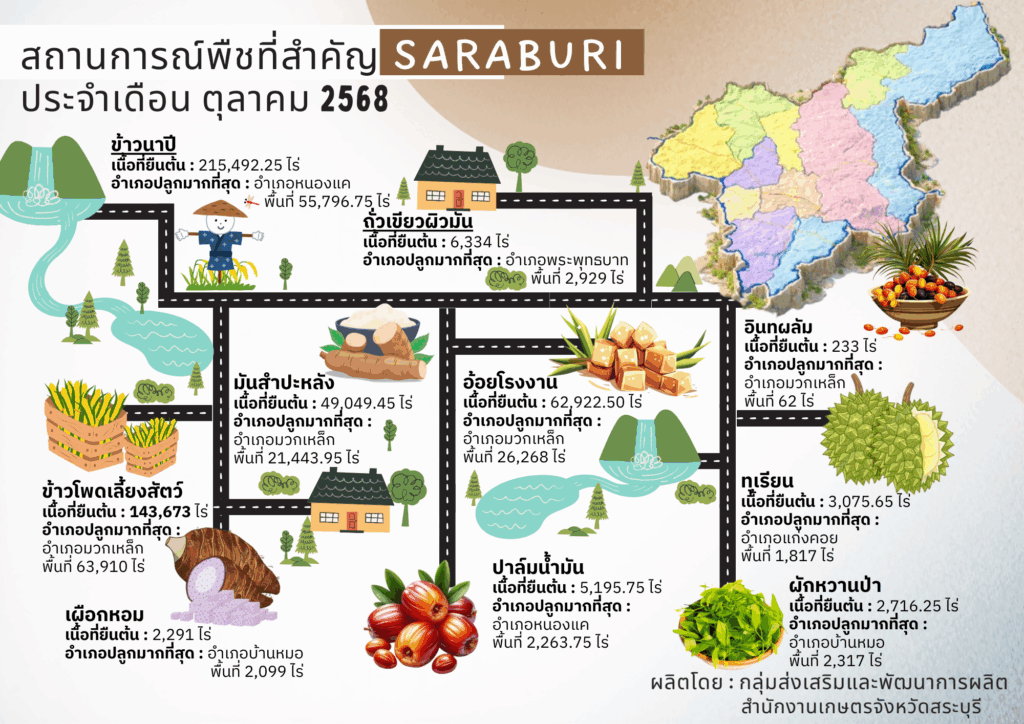 สถานการณ์พืชที่สำคัญของจังหวัดสระบุรี, เทคโนโลยี นวัตกรรมการผลิตพืชสถานการณ์พืชที่สำคัญ ของจังหวัดสระบุรี ประจำเดือนตุลาคม 2568 กลุ่มส่งเสริมและพัฒนาการผลิต / 16/10/2025