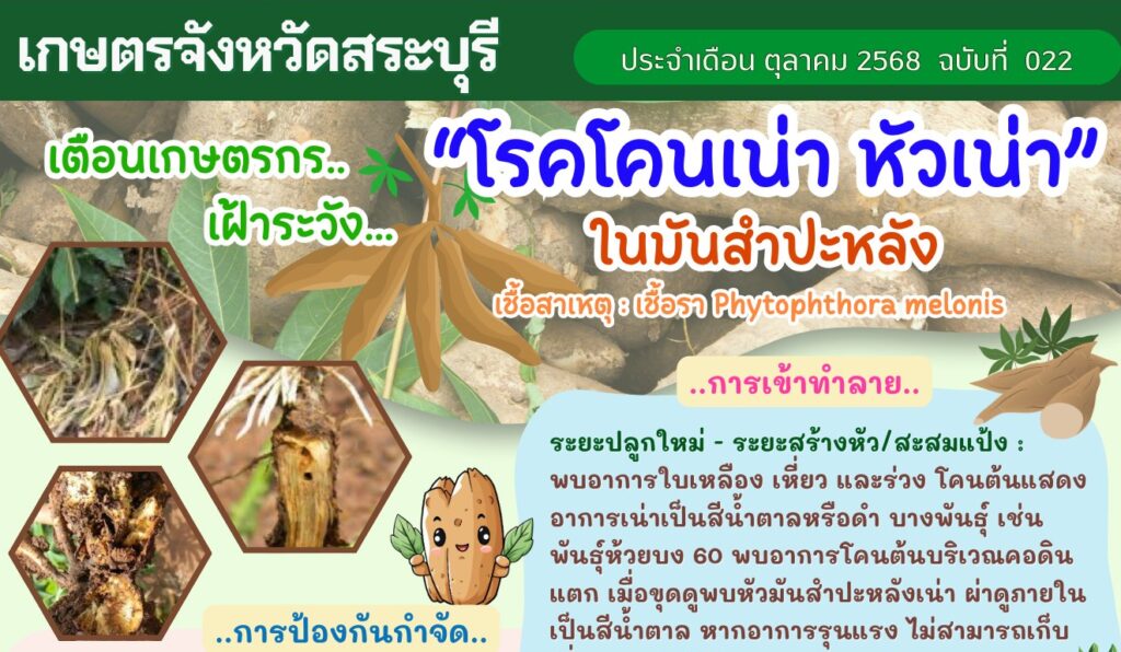 ข่าวส่งเสริมการเกษตร, ข่าวเตือนการระบาดศัตรูพืชเตือนเกษตรกร เฝ้าระวัง : “โรคโคนเน่า หัวเน่า ในมันสำปะหลัง” กลุ่มอารักขาพืช / 22/10/2025