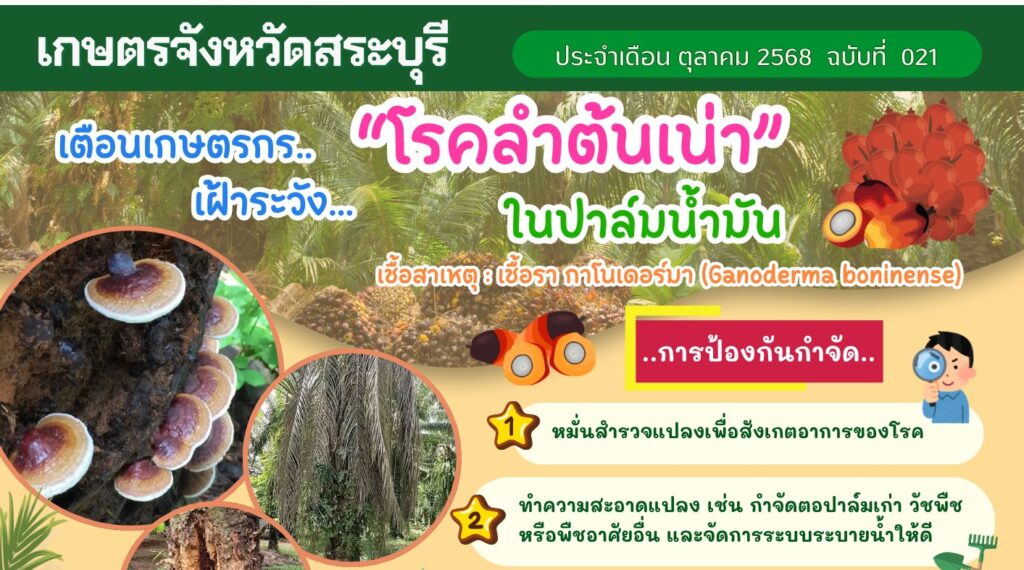ข่าวส่งเสริมการเกษตร, ข่าวเตือนการระบาดศัตรูพืชเตือนเกษตรกร เฝ้าระวัง “โรคลำต้นเน่า ในปาล์มน้ำมัน” กลุ่มอารักขาพืช / 22/10/2025