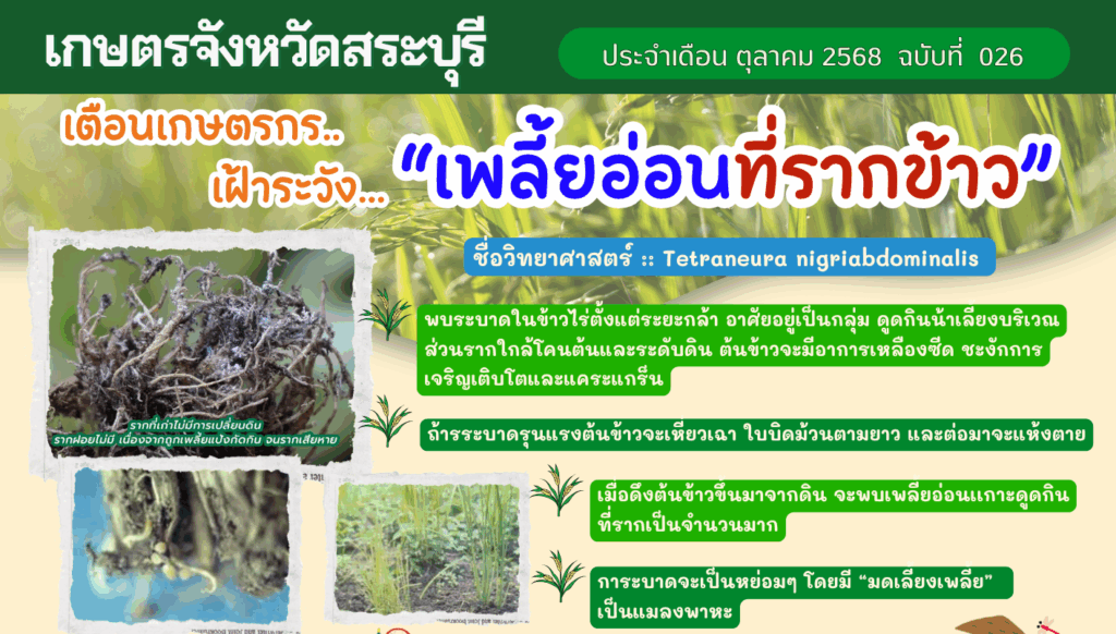 ข่าวส่งเสริมการเกษตร, ข่าวเตือนการระบาดศัตรูพืชเตือนเกษตรกร เฝ้าระวัง “เพลี้ยอ่อนที่รากข้าว” กลุ่มอารักขาพืช / 22/10/2025