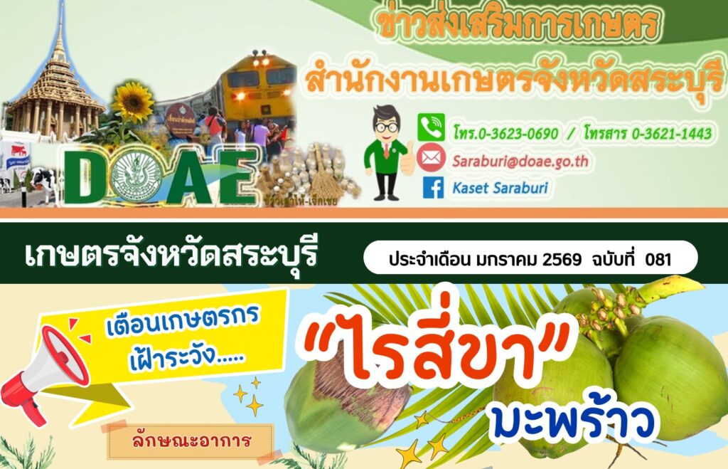 ข่าวเตือนการระบาดศัตรูพืชเตือนเกษตรกรเฝ้าระวัง “โรคใบขาว” (เชื้อไฟโตพลาสมา) กลุ่มอารักขาพืช / 30/01/2026