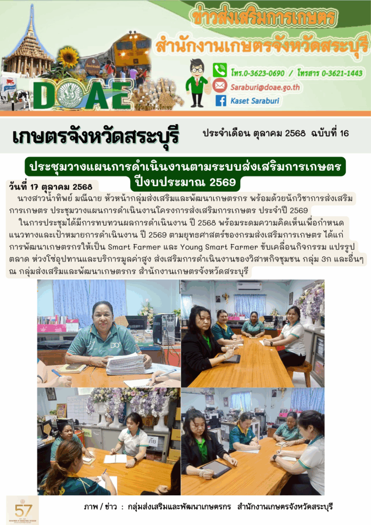 ณ กลุ่มส่งเสริมและพัฒนาเกษตรกร สำนักงานเกษตรจังหวัดสระบุรี