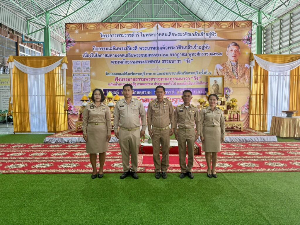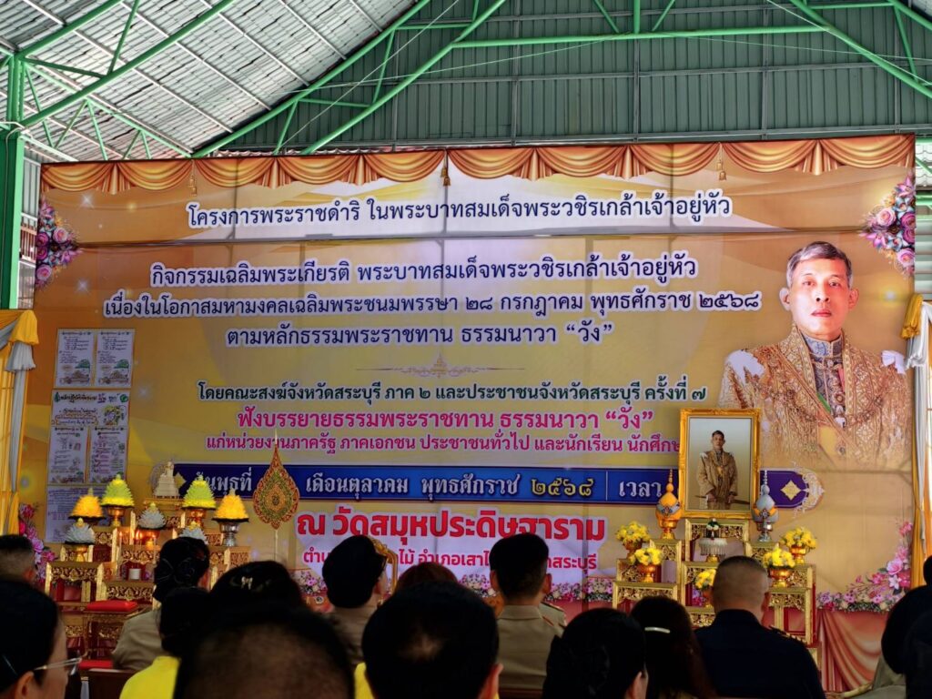 วันพุธที่่ ๒๒ ตุลาคม ๒๕๖๘ นายปรีชา สายแสง เกษตรจังหวัดสระบุรี พร้อมด้วยนางสาวสุทิน หิรัญอ่อน หัวหน้ากลุ่มส่งเสริมและพัฒนาการผลิต และเจ้าหน้าที่กลุ่มส่งเสริมและพัฒนาการผลิต เข้าร่วมฟังบรรยายธรรมพระราชทาน ธรรมนาวา “วัง” ตามโครงการพระราชดำริ ในพระบาทสมเด็จพระวชิรเกล้าเจ้าอยู่หัว กิจกรรมเฉลิมพระเกียรติ พระบาทสมเด็จพระวชิรเกล้าเจ้าอยู่หัว เนื่องในโอกาสมหามงคลเฉลิมพระชนมพรรษา ๒๘ กรกฎาคม ๒๕๖๘ ตามหลักธรรมพระราชทาน ธรรมนาวา “วัง” ณ วัดสมุหประดิษฐ์ฐาราม ตำบลสวนดอกไม้ อำเภอเสาไห้ จังหวัดสระบุรี