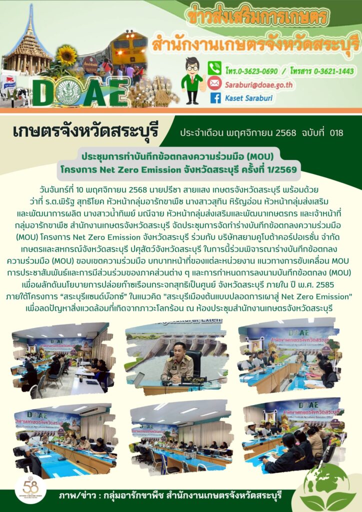 เกษตรจังหวัดสระบุรี : ประชุมการทำบันทึกข้อตกลงความร่วมมือ (MOU) โครงการ Net Zero Emission จังหวัดสระบุรี ครั้งที่ 1/2569By กลุ่มอารักขาพืช / 10/11/2025