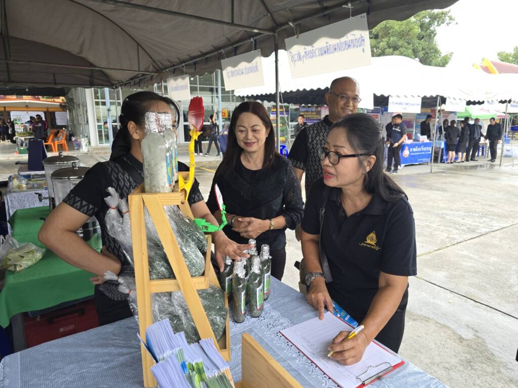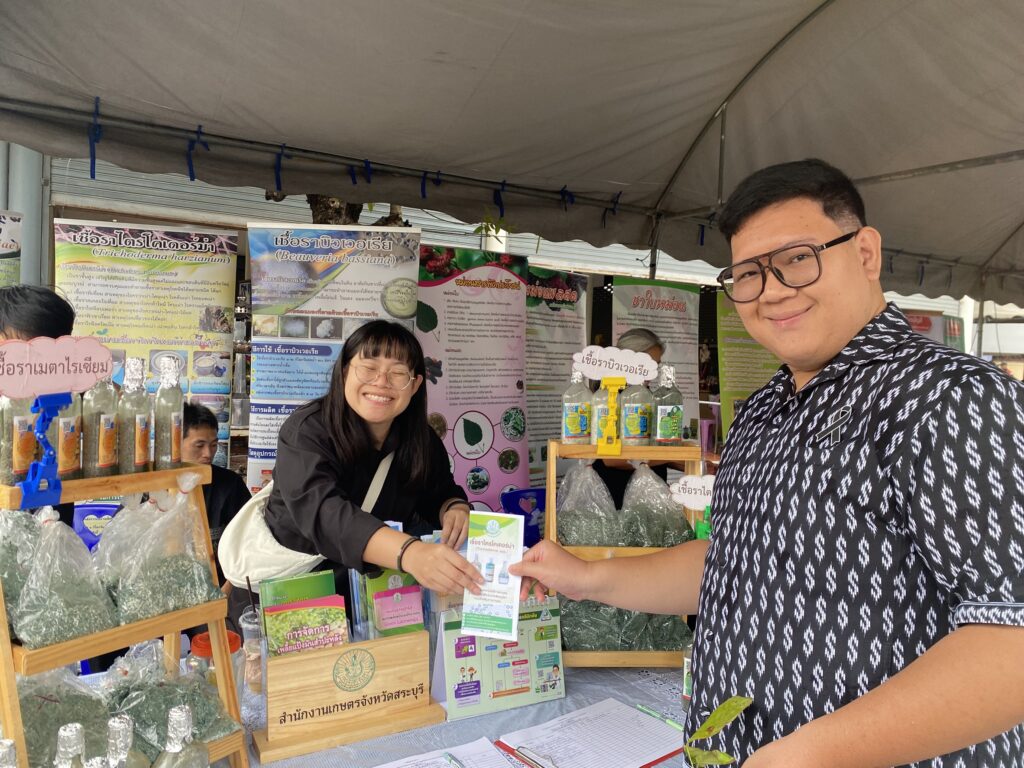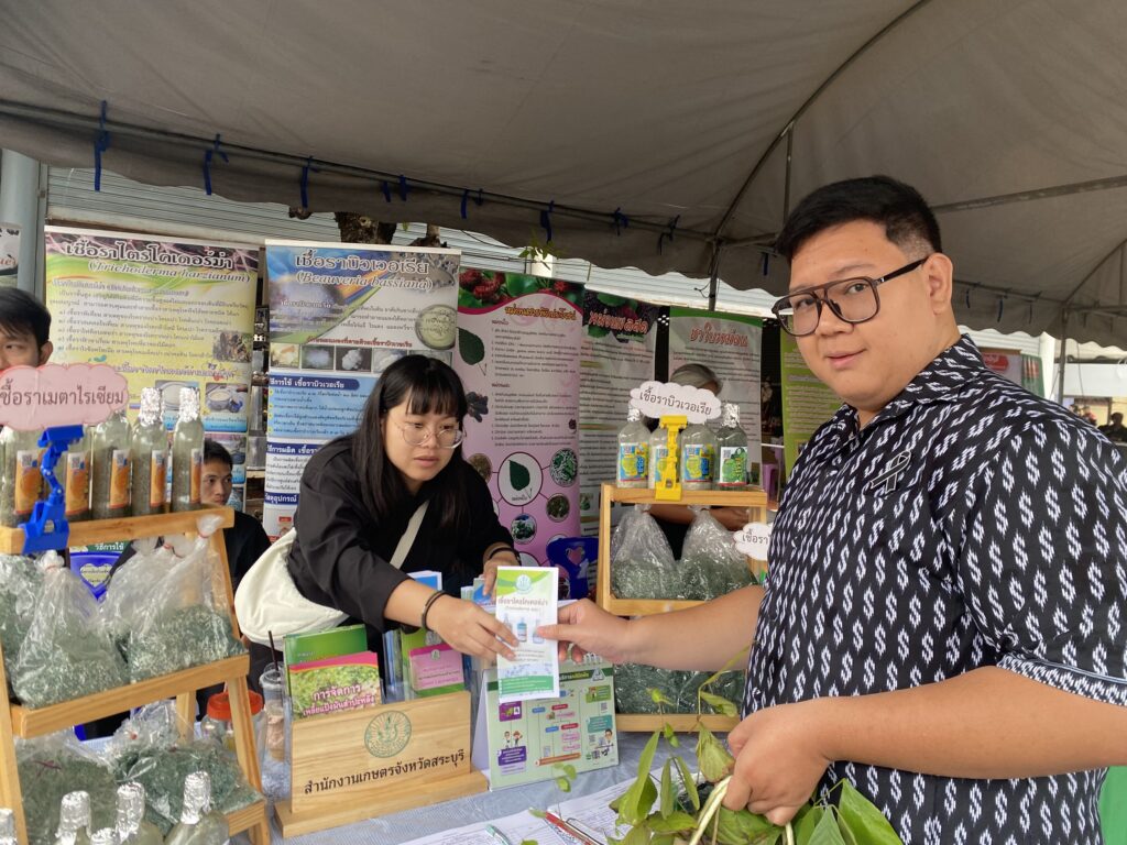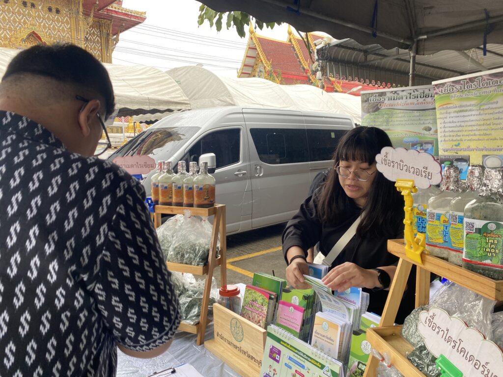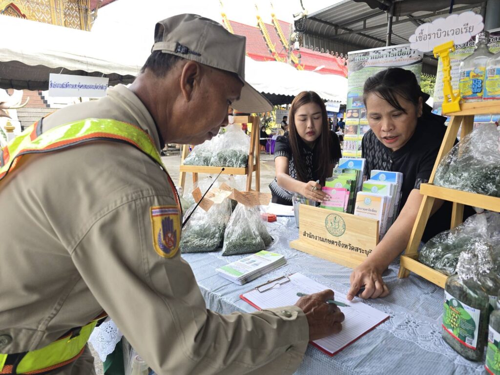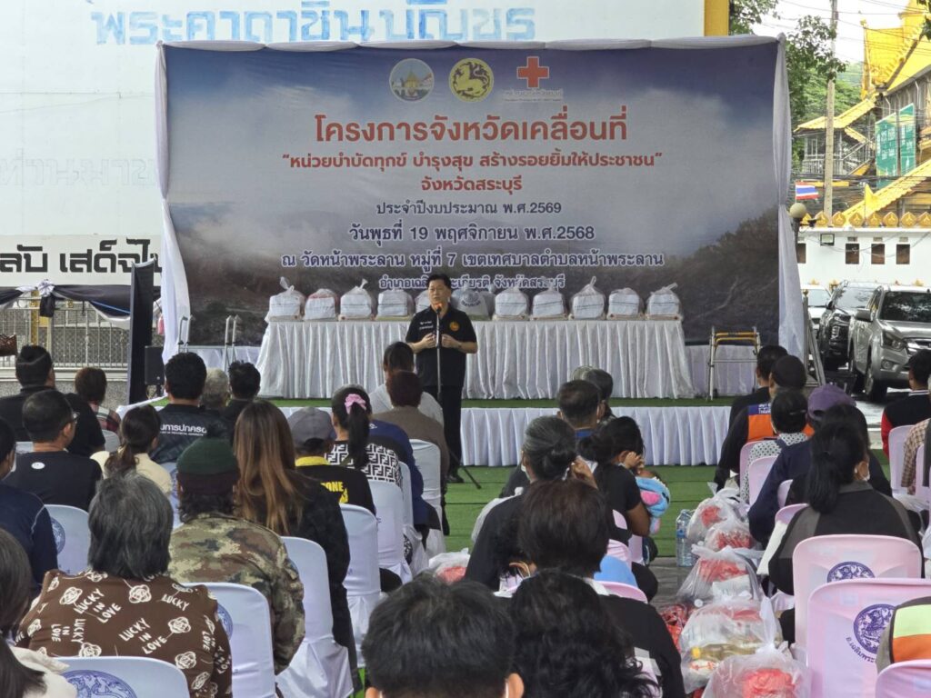 วันพุธที่ ๑๙ พฤศจิกายน พ.ศ. ๒๕๖๘ จังหวัดสระบุรี จัดงานโครงการ “หน่วยบำบัดทุกข์ บำรุงสุข สร้างรอยยิ้มให้ประชาชน” จังหวัดสระบุรี โดยมี นายบัญชา เชาวรินทร์ ผู้ว่าราชการจังหวัดสระบุรี นางจิตตินันท์ เชาวรินทร์ นายกเหล่ากาชาดจังหวัดสระบุรี ประธานแม่บ้านมหาดไทย จ.สระบุรี พร้อมคณะกรรมการสมาชิกเหล่ากาชาดจังหวัดสระบุรี สมาชิกชมรมแม่บ้านมหาดไทย จ.สระบุรี พร้อมส่วนราชการในจังหวัดสระบุรี ออกให้บริการหน่วย บำบัดทุกข์ บำรุงสุข สร้างรอยยิ้มให้ประชาชน ณ วัดหน้าพระลาน หมู่ที่ ๗ ตำบลหน้าพระลาน อำเภอเฉลิมพระเกียรติ จังหวัดสระบุรี พร้อมติดตามปัญหา อุปสรรค และความเดือดร้อนและความต้องการของคนในหมู่บ้าน ในชุมชน เพื่อให้การช่วยเหลือในด้านต่างๆ ได้ตรงตามความต้องการ รวมทั้ง การออกให้บริการคำแนะนำต่าง ๆ จากหน่วยงานราชการของจังหวัดและหน่วยงานภาคเอกชน ในการนี้ นายปรีชา สายแสง เกษตรจังหวัดสระบุรี มอบหมายให้ ว่าที่ ร.ต. พิรัฐ สุทธิโยค หัวหน้ากลุ่มอารักขาพืช พร้อมเจ้าหน้าที่กลุ่มอารักขาพืช และกลุ่มยุทธศาสตร์และสารสนเทศ สำนักงานเกษตรจังหวัดสระบุรี ร่วมกับสำนักงานเกษตรอำเภอฉลิมพระเกียรติ จังหวัดสระบุรี ให้บริการความรู้ทางด้านการเกษตร การป้องกันกำจัดโรคและแมลงศัตรูพืชด้วยชีววิธี สนับสนุนสารชีวภัณฑ์ เช่น เชื้อราไตรโคเดอร์มา บิวเวอร์เรีย และเมตาไรเซียม