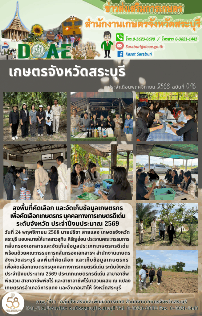 ลงพื้นที่คัดเลือก และจัดเก็บข้อมูลเกษตรกรเพื่อคัดเลือกเกษตรกร บุคคลทางการเกษตรดีเด่น ระดับจังหวัด ประจำปีงบประมาณ 2569By กลุ่มส่งเสริมและพัฒนาการผลิต / 24/11/2025