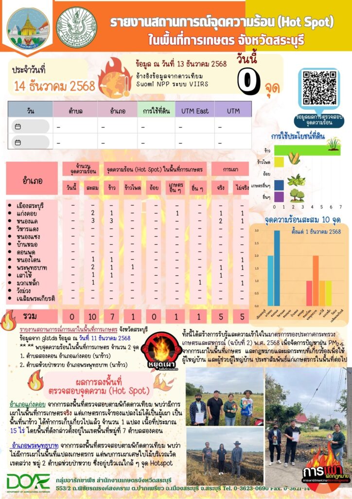 ข้อมูลจุดความร้อน (Hot Spot) ในพื้นที่การเกษตร ประจำวันที่ 14 ธันวาคม 2568By กลุ่มอารักขาพืช / 14/12/2025
