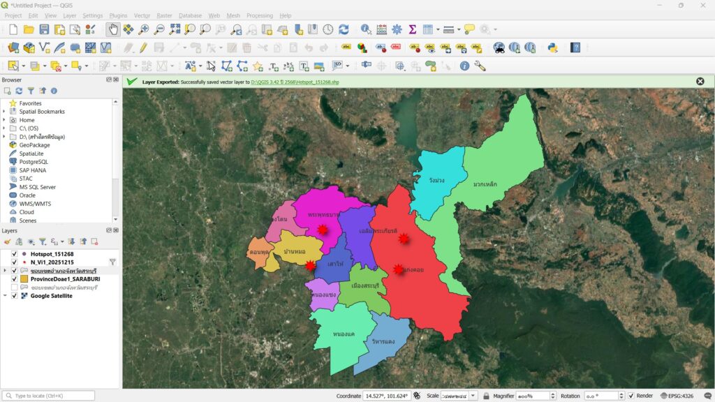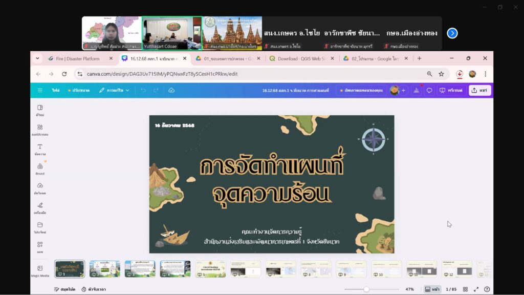 วันอังคารที่ ๑๖ ธันวาคม ๒๕๖๘ นางสาวสุทิน หิรัญอ่อน หัวหน้ากลุ่มส่งเสริมและพัฒนาการผลิต รักษาราชการแทน เกษตรจังหวัดสระบุรี มอบหมายให้นางสาวเมธาพร ลมัยศรี นักวิชาการส่งเสริมการเกษตรชำนาญการ ปฏิบัติหน้าที่ในตำแหน่ง หัวหน้ากลุ่มยุทธศาสตร์และสารสนเทศ พร้อมด้วย เจ้าหน้าที่สำนักงานเกษตรจังหวัดสระบุรี เข้ารับการอบรมการจัดทำแผนที่ด้วย QGIS และการนำเสนอข้อมูลด้วย DASHBOARD ผ่านระบบออนไลน์ Zoom Meeting ซึ่งจัดโดย สำนักงานส่งเสริมและพัฒนาการเกษตรที่ ๑ จังหวัดชัยนาท โดยมี นายสุชาติ อ่อนดำ ผู้อำนวยการสำนักงานส่งเสริมและพัฒนาการเกษตรที่ ๑ จังหวัดชัยนาท ให้เกียรติเป็นประธานเปิดการอบรม เพื่อให้เจ้าหน้าที่ระดับจังหวัด ระดับอำเภอสามารถจัดทำแผนที่จุดความร้อน ด้วยโปรแกรม QGIS และการจัดทำข้อมูลจุดความร้อน เพื่อแสดงผลข้อมูลในรูปแบบ DASHBOARD โดยมีกิจกรรมทั้ง การบรรยายและการฝึกปฏิบัติ