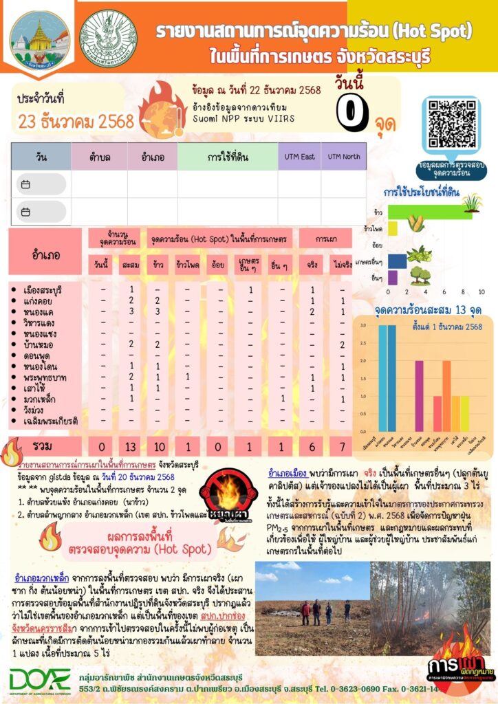 ข้อมูลจุดความร้อน (Hot Spot) ในพื้นที่การเกษตร ประจำวันที่ 23 ธันวาคม 2568By กลุ่มอารักขาพืช / 23/12/2025