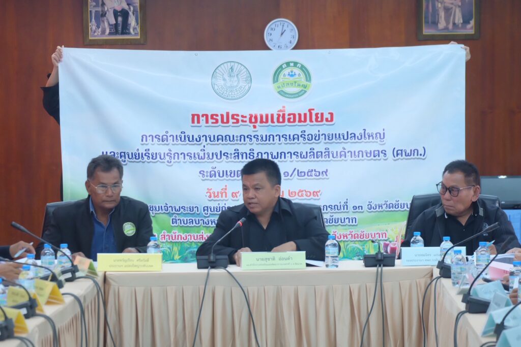 วันศุกร์ที่ ๙ มกราคม ๒๕๖๙ นายสุชาติ อ่อนดำ ผู้อำนวยการสำนักงานส่งเสริมและพัฒนาการเกษตรที่ ๑ จังหวัดชัยนาท เป็นประธานเปิดการประชุมเชื่อมโยงการดำเนินงานคณะกรรมการเครือข่ายแปลงใหญ่ และ ศพก. ระดับเขต (เขต ๑) ครั้งที่ ๑/๒๕๖๙ ณ ศูนย์ถ่ายทอดเทคโนโลยีการสหกรณ์ที่ ๑๓ จังหวัดชัยนาท ตำบลบางหลวง อำเภอสรรพยา จังหวัดชัยนาท โดยมีวัตถุประสงค์เพื่อให้เกิดการบูรณาการขับเคลื่อนการดำเนินงานเครือข่ายและเชื่อมโยงด้านการผลิต การตลาด การแลกเปลี่ยนองค์ความรู้ต่าง ๆ และร่วมกันหาแนวทางแก้ไขปัญหาด้านการเกษตรในพื้นที่ภาคกลาง ๙ จังหวัด รวมทั้งขับเคลื่อนภาคการเกษตรให้เกิดการพัฒนาอย่างยั่งยืน โดยมีหน่วยงานและเครือข่ายร่วมประชุม ๖ หน่วยงาน ได้แก่ สำนักงานชลประทานที่ ๑๒ ศูนย์วิจัยข้าวชัยนาท สำนักวิจัยและพัฒนาการเกษตรเขตที่ ๕ สำนักงานพาณิชย์จังหวัดชัยนาท สำนักงานตรวจบัญชีสหกรณ์ที่ ๑ สำนักงานฝ่ายกิจการสาขาภาคกลาง ธนาคารเพื่อการเกษตรและสหกรณ์การเกษตร เครือข่าย Young Smart Farmer จังหวัดชัยนาท และหน่วยงานของกรมส่งเสริมการเกษตร โดยมีวาระพิจารณาการจัด Field Day การจัดทำยุทธศาสตร์ขับเคลื่อน ศพก. ระดับเขต และประเด็นปัญหาอุปสรรคในการดำเนินงานของ ศพก. และแปลงใหญ่ และแนวทางแก้ไขเพื่อเสนอระดับประเทศต่อไแ ในการนี้ นายปรีชา สายแสง เกษตรจังหวัดสระบุรี มอบหมายให้ นางสาวเบญญทิพย์ ส้มม่วง นักวิชการส่งเสริมการเกษตรชำนาญการ กลุ่มยุทธศาสตร์และสารสนเทศ และนางสาวอริศรา พันยะฤทธิ์ นักวิชการส่งเสริมการเกษตรชำนาญการ กลุ่มส่งเสริมและพัฒนาการผลิต พร้อมด้วย นายสมจิตร แก่นวิจิตร ประธาน ศพก. จังหวัดสระบุรี นายสมพงษ์ สิงห์น้อย เลขานุการแปลงใหญ่ จังหวัดสระบุรี เข้าร่วมการประชุมครั้งนี้