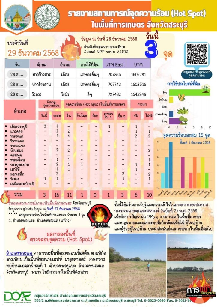 ข้อมูลจุดความร้อน (Hot Spot) ในพื้นที่การเกษตร ประจำวันที่ 29 ธันวาคม 68By กลุ่มอารักขาพืช / 29/12/2025
