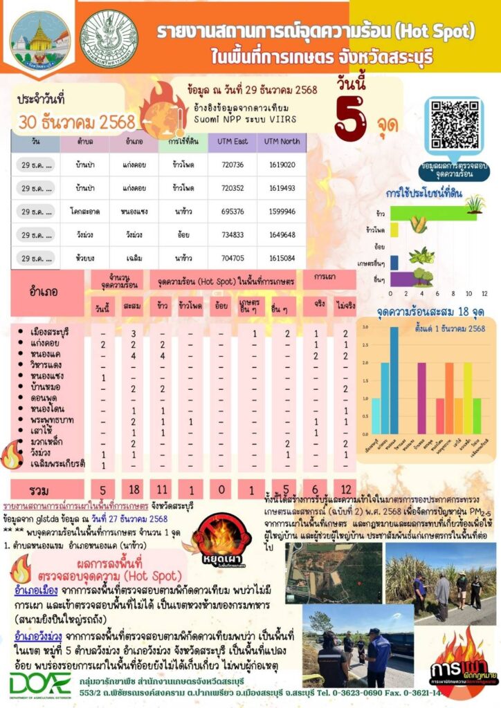 ข้อมูลจุดความร้อน (Hot Spot) ในพื้นที่การเกษตร ประจำวันที่ 30 ธันวาคม 68By กลุ่มอารักขาพืช / 30/12/2025