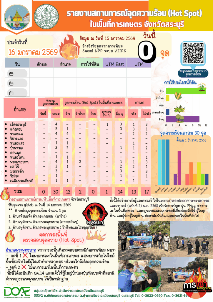 ข้อมูลจุดความร้อน (Hot Spot) ในพื้นที่การเกษตร ประจำวันที่ 16 มกราคม 69By กลุ่มอารักขาพืช / 16/01/2026