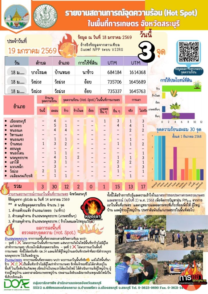 ข้อมูลจุดความร้อน (Hot Spot) ในพื้นที่การเกษตร ประจำวันที่ 19 มกราคม 69By กลุ่มอารักขาพืช / 19/01/2026
