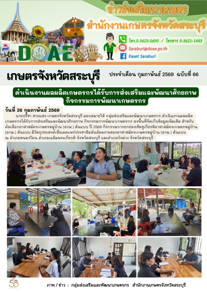 ดำเนินงานผลผลิตเกษตรกรได้รับการส่งเสริมและพัฒนาศักยภาพ กิจกรรมการพัฒนาเกษตรกรBy กลุ่มส่งเสริมและพัฒนาเกษตรกร / 26/02/2026