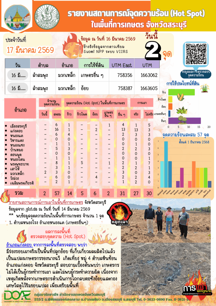 ข้อมูลจุดความร้อน (Hot Spot) ในพื้นที่การเกษตร ประจำวันที่ 17 มีนาคม 2569By กลุ่มอารักขาพืช / 17/03/2026
