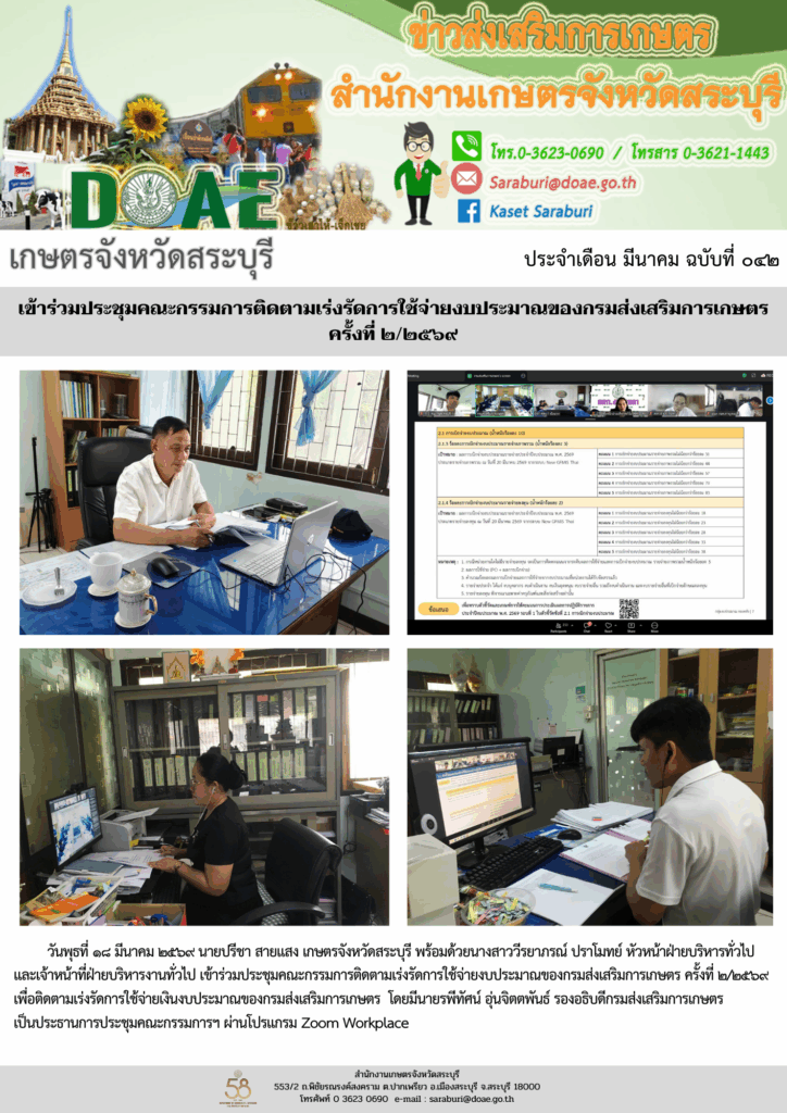 เกษตรจังหวัดสระบุรี เข้าร่วมประชุมคณะกรรมการติดตามเร่งรัดการใช้จ่ายงบประมาณของกรมส่งเสริมการเกษตร ครั้งที่ 2/2569By admin_doae / 18/03/2026