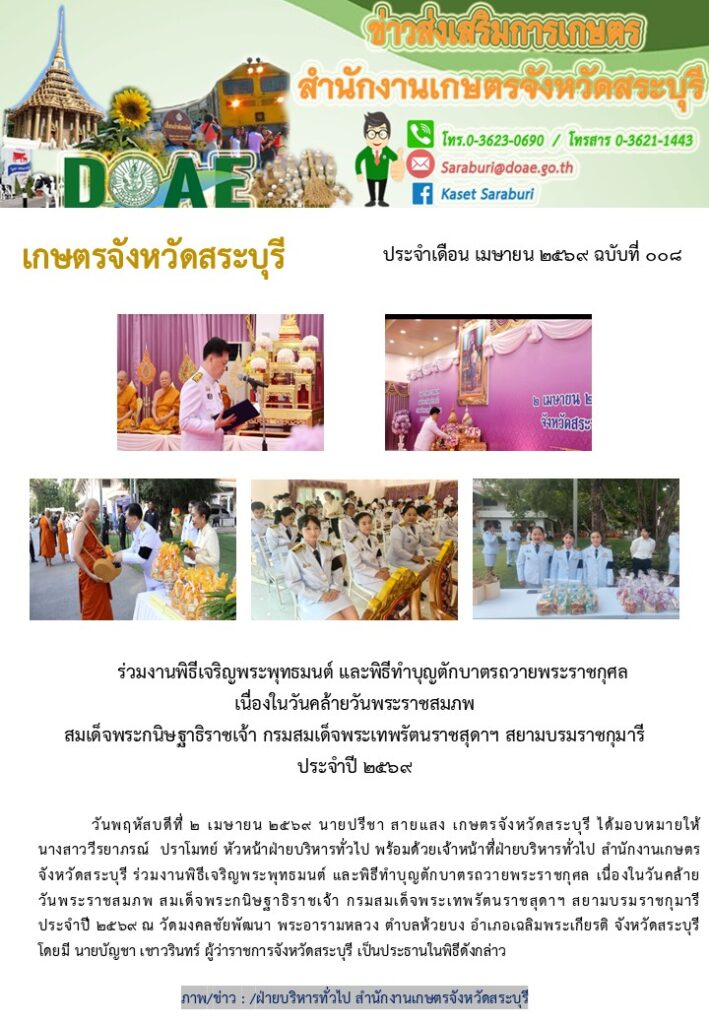 ร่วมงานพิธีเจริญพระพุทธมนต์ และพิธีทำบุญตักบาตรถวายพระราชกุศล เนื่องในวันคล้ายวันพระราชสมภพ สมเด็จพระกนิษฐาธิราชเจ้า กรมสมเด็จพระเทพรัตนราชสุดาฯ สยามบรมราชกุมารี ประจำปี 2569By ฝ่ายบริหารทั่วไป / 02/04/2026 วันที่ 2 เมษายน 2569