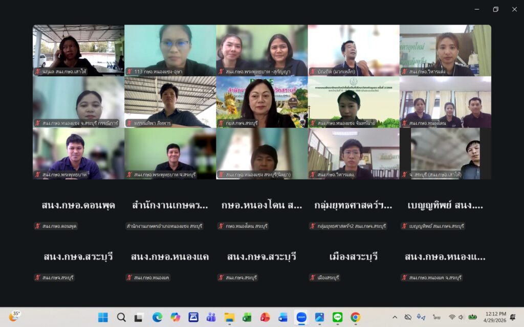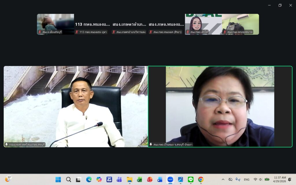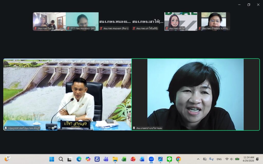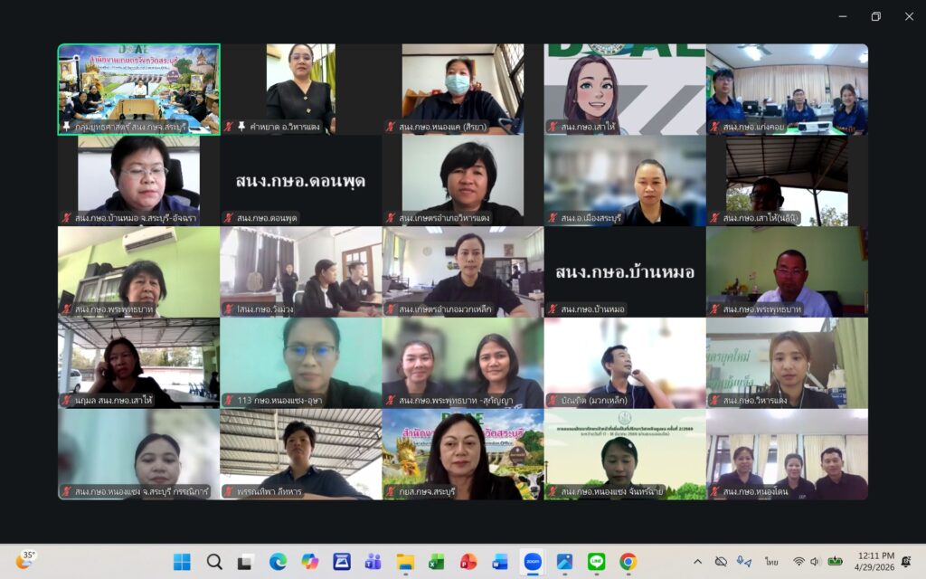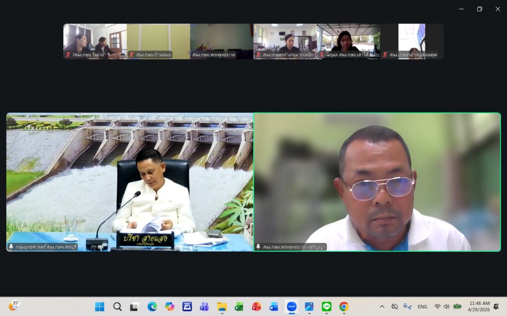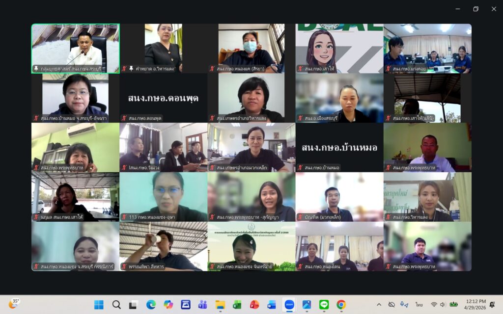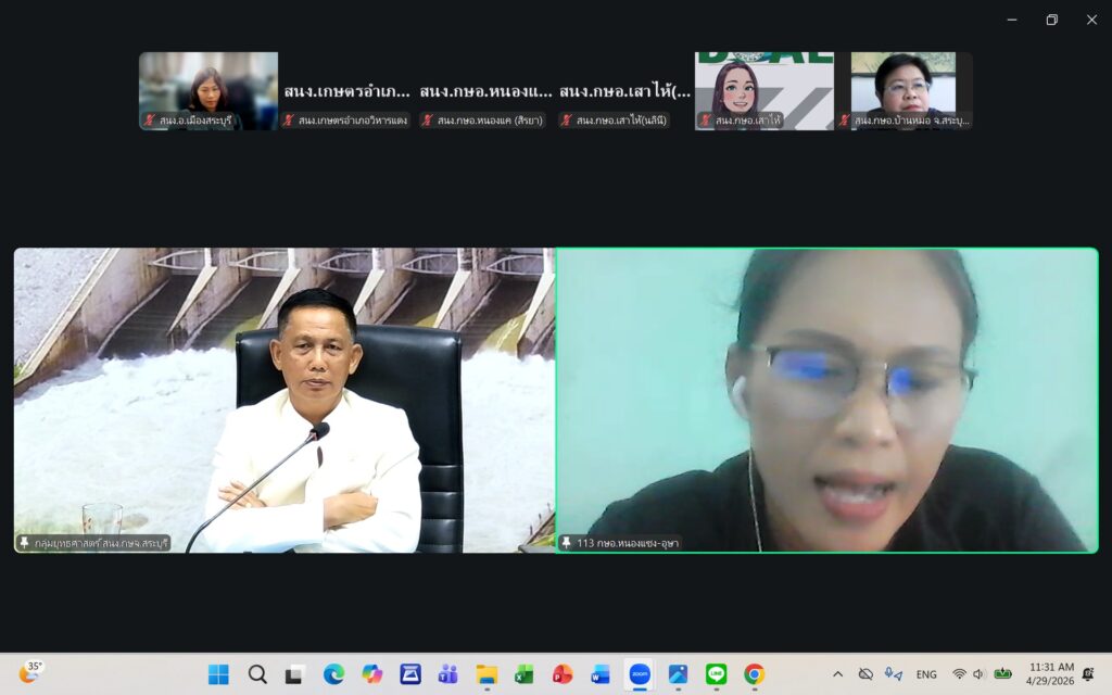 วันพุธที่ ๒๙ เมษายน ๒๕๖๙ นายปรีชา สายแสง เกษตรจังหวัดสระบุรี เป็นประธานในการประชุมเกษตรอำเภอ ประจำเดือนเมษายน ๒๕๖๙ ครั้งที่ ๗/๒๕๖๙ ณ ห้องประชุมสำนักงานเกษตรจังหวัดสระบุรี และผ่านระบบออนไลน์ Zoom Meeting ตามมาตรการด้านพลังงานตามมติคณะรัฐมนตรี โดยมีหัวหน้ากลุ่ม/ฝ่าย เกษตรอำเภอ ทุกอำเภอ และเจ้าหน้าที่สำนักงานเกษตรอำเภอ เข้าร่วมประชุมโดยพร้อมกัน การประชุมครั้งนี้ เพื่อแจ้งเรื่องเพื่อทราบจากกลุ่ม/ฝ่าย การขับเคลื่อนงานส่งเสริมการเกษตร ประจำปีงบประมาณ พ.ศ. ๒๕๖๙ การดำเนินงานตามแผนงาน/โครงการส่งเสริมการเกษตร ปีงบประมาณ พ.ศ. ๒๕๖๙ และพิจารณาข้อมูลสถานการณ์การปลูกพืชเดือนเมษายน ๒๕๖๙ และแผนการปฏิบัติงานตามระบบส่งเสริมการเกษตรประจำเดือนพฤษภาคม ๒๕๖๙