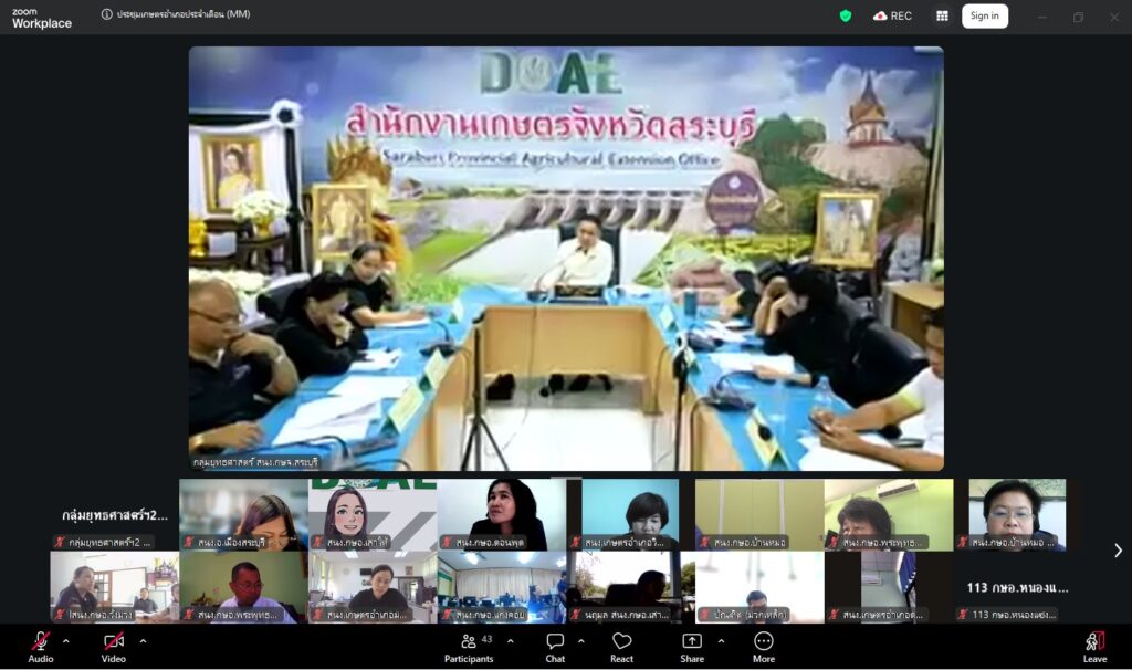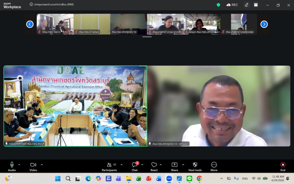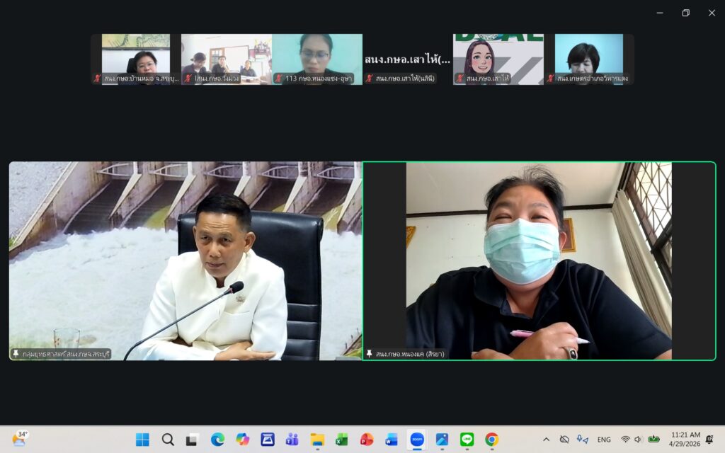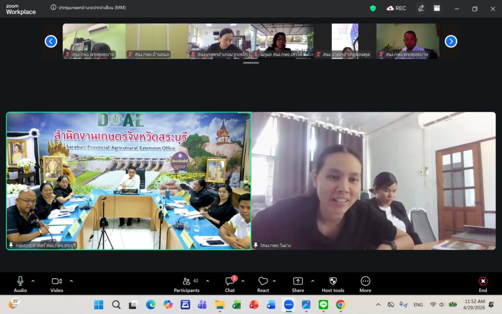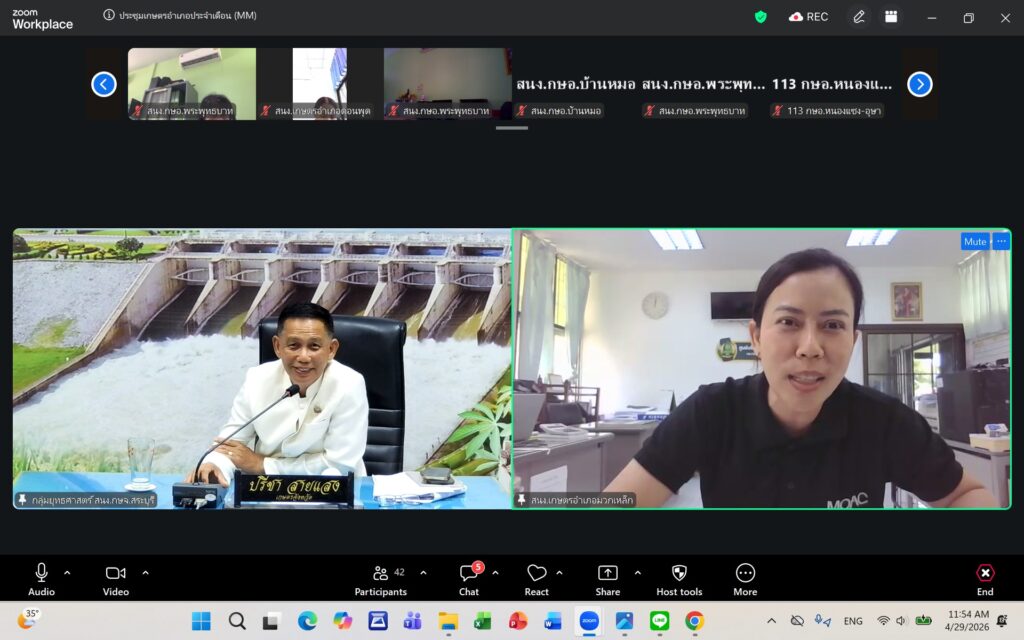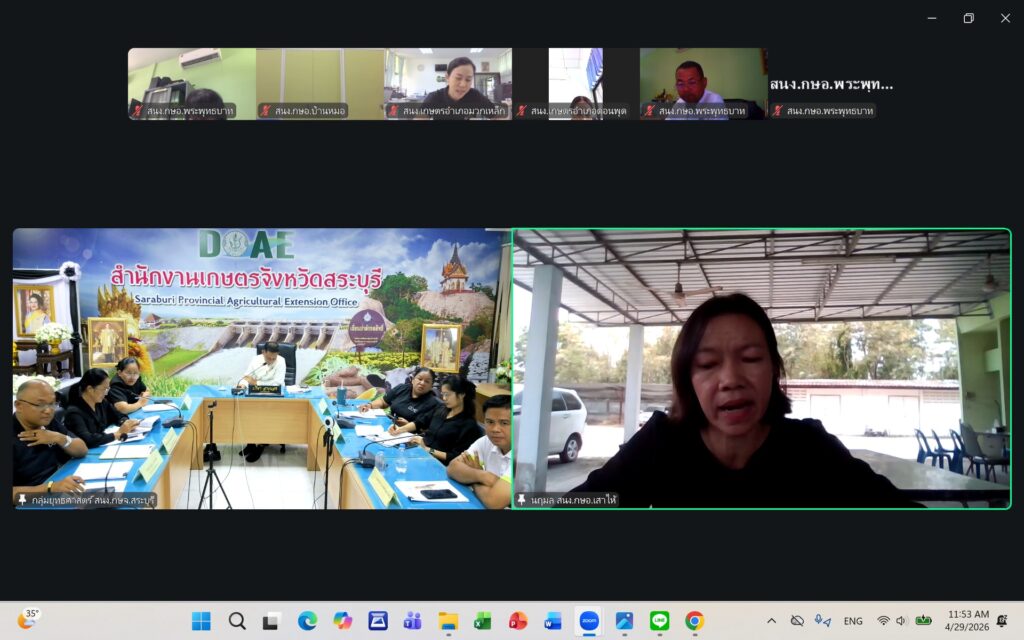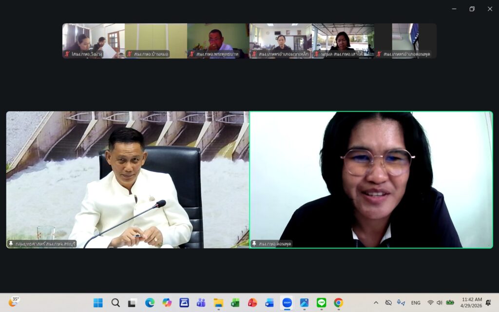 วันพุธที่ ๒๙ เมษายน ๒๕๖๙ นายปรีชา สายแสง เกษตรจังหวัดสระบุรี เป็นประธานในการประชุมเกษตรอำเภอ ประจำเดือนเมษายน ๒๕๖๙ ครั้งที่ ๗/๒๕๖๙ ณ ห้องประชุมสำนักงานเกษตรจังหวัดสระบุรี และผ่านระบบออนไลน์ Zoom Meeting ตามมาตรการด้านพลังงานตามมติคณะรัฐมนตรี โดยมีหัวหน้ากลุ่ม/ฝ่าย เกษตรอำเภอ ทุกอำเภอ และเจ้าหน้าที่สำนักงานเกษตรอำเภอ เข้าร่วมประชุมโดยพร้อมกัน การประชุมครั้งนี้ เพื่อแจ้งเรื่องเพื่อทราบจากกลุ่ม/ฝ่าย การขับเคลื่อนงานส่งเสริมการเกษตร ประจำปีงบประมาณ พ.ศ. ๒๕๖๙ การดำเนินงานตามแผนงาน/โครงการส่งเสริมการเกษตร ปีงบประมาณ พ.ศ. ๒๕๖๙ และพิจารณาข้อมูลสถานการณ์การปลูกพืชเดือนเมษายน ๒๕๖๙ และแผนการปฏิบัติงานตามระบบส่งเสริมการเกษตรประจำเดือนพฤษภาคม ๒๕๖๙