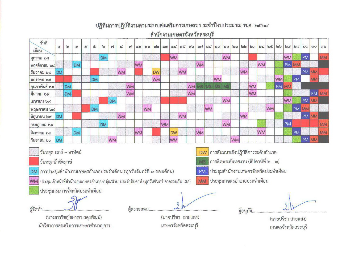 ปฏิทินการปฏิบัติงานตามระบบส่งเสริมการเกษตร ประจำปีงบประมาณ พ.ศ. 2569