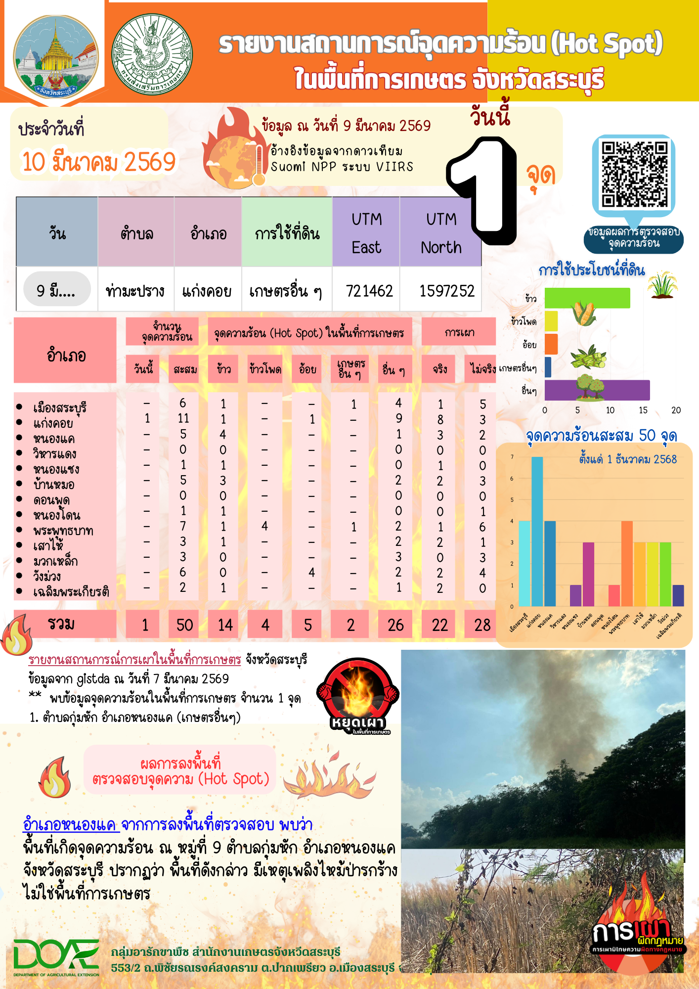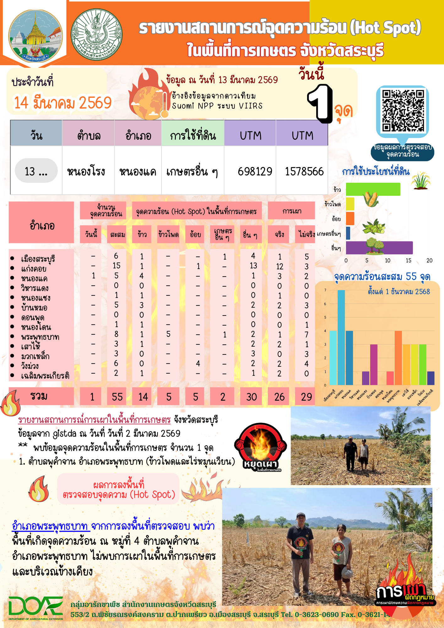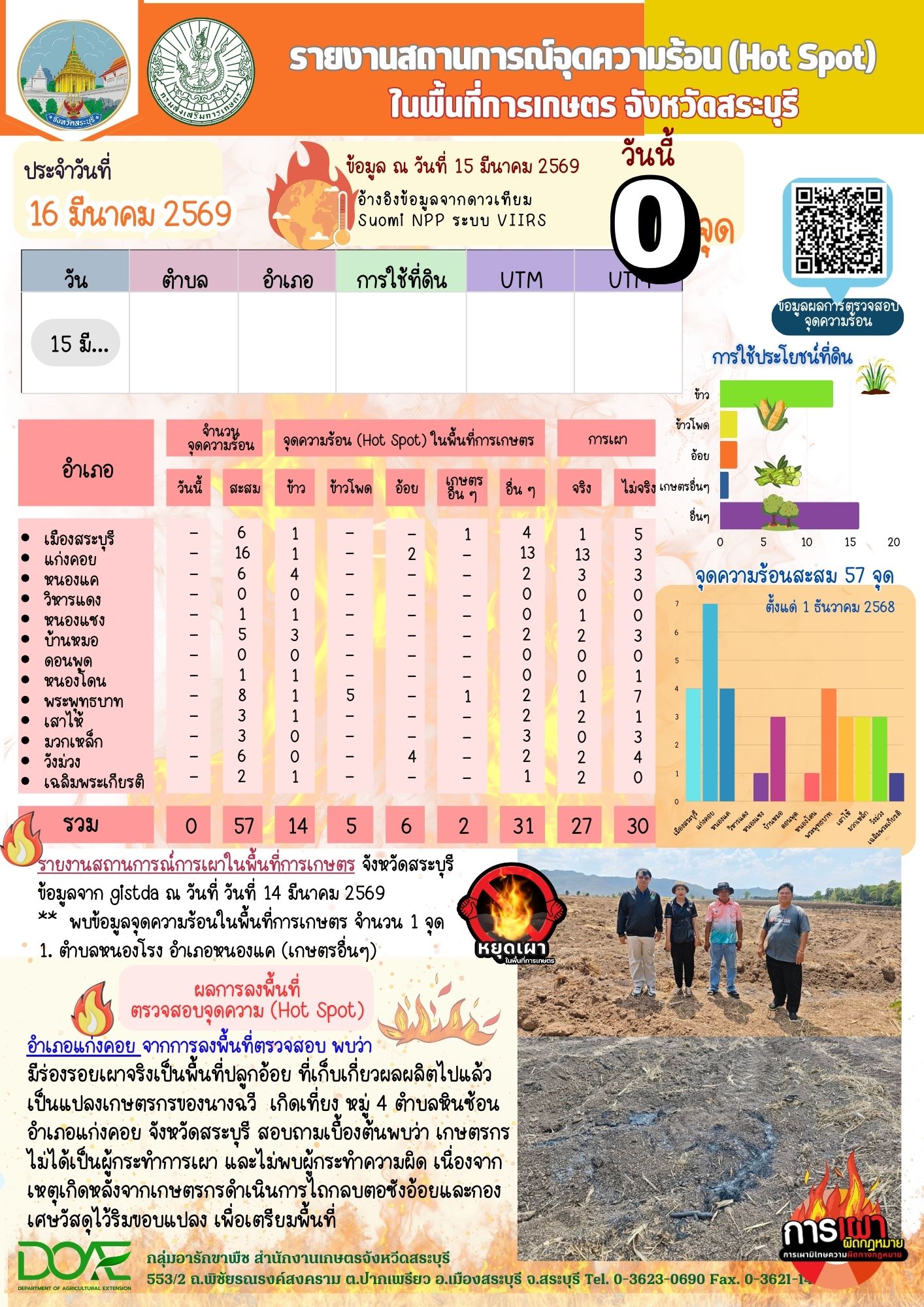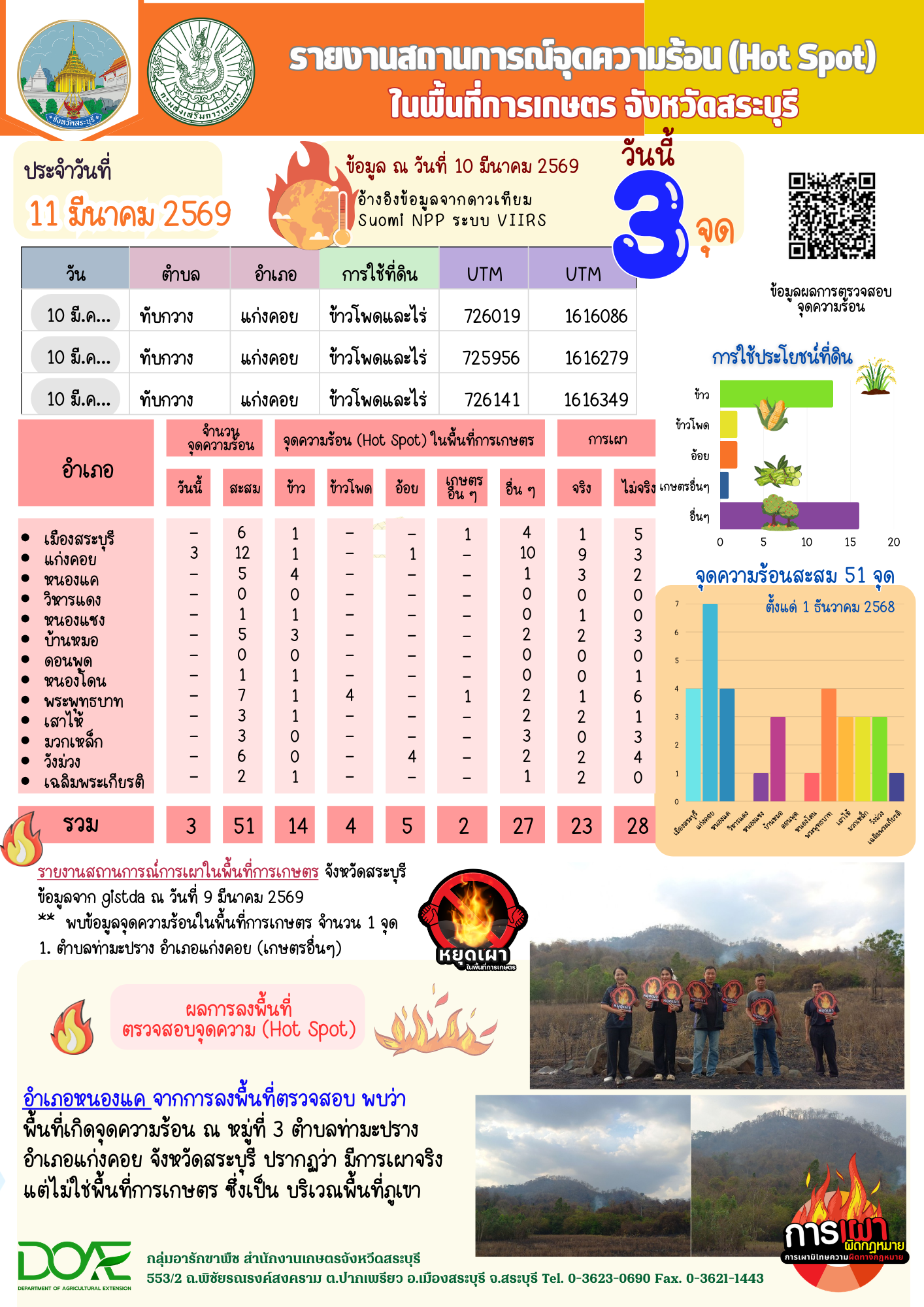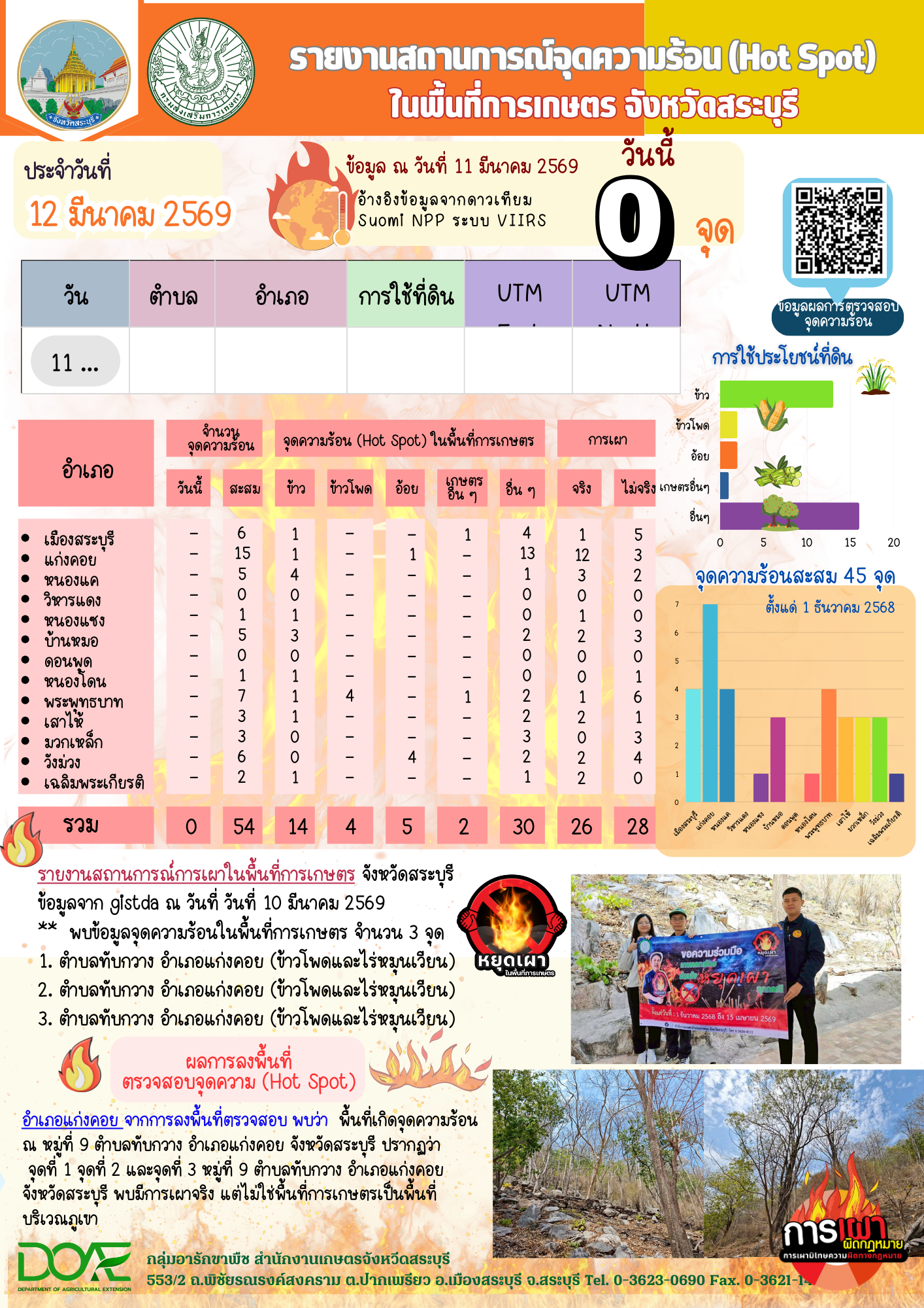 รายงานสถานการณ์จุดความร้อน (Hot Spot) ในพื้นที่การเกษตรจังหวัดสระบุรี