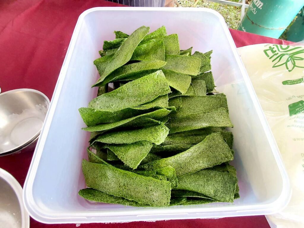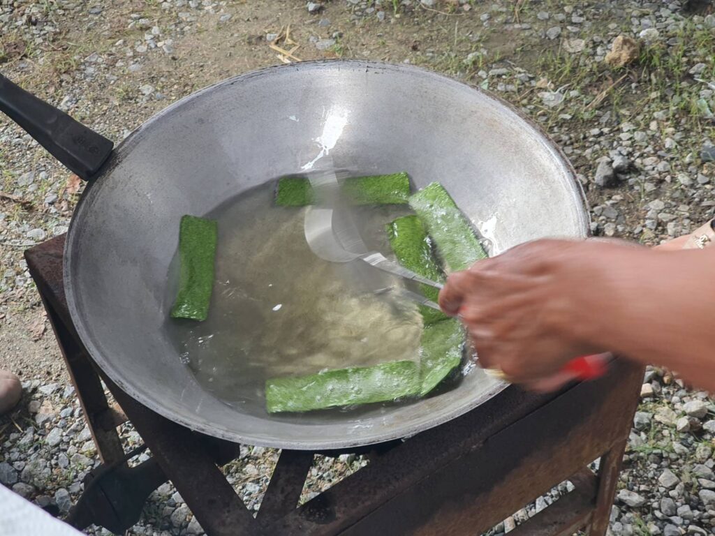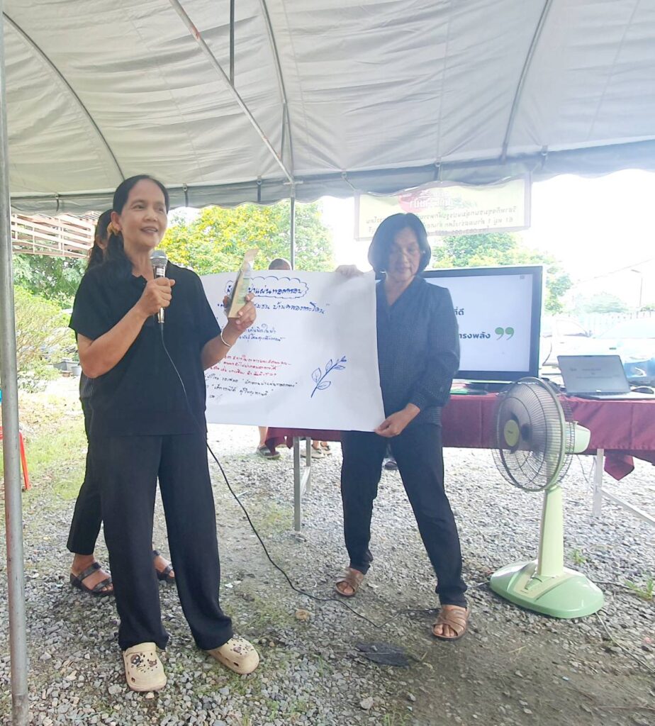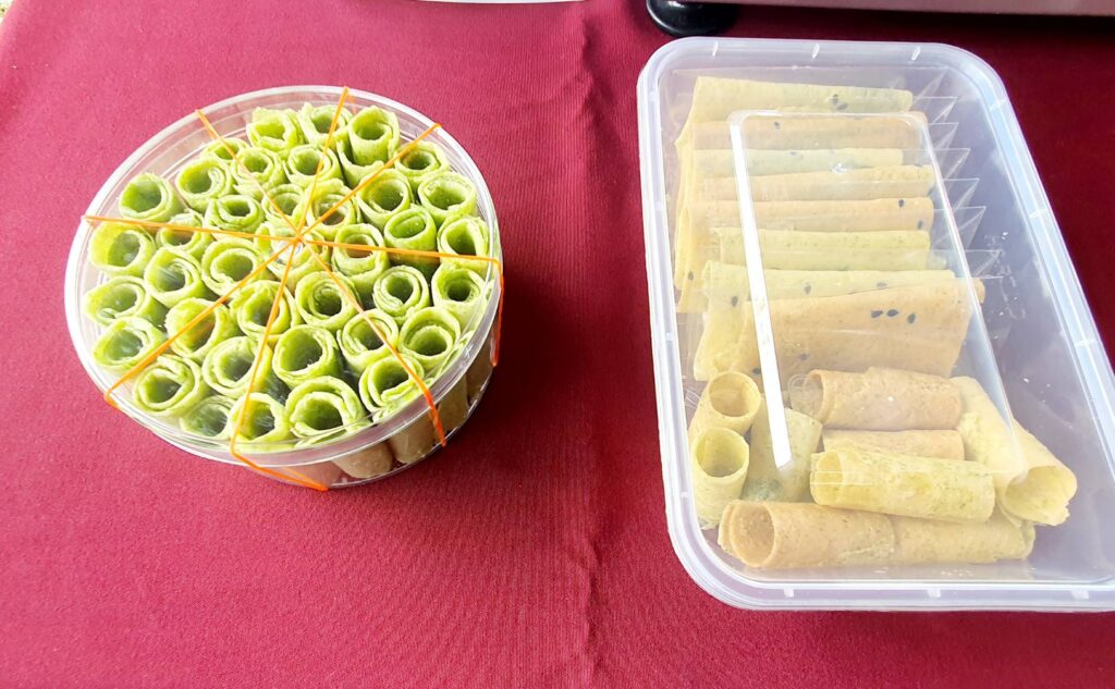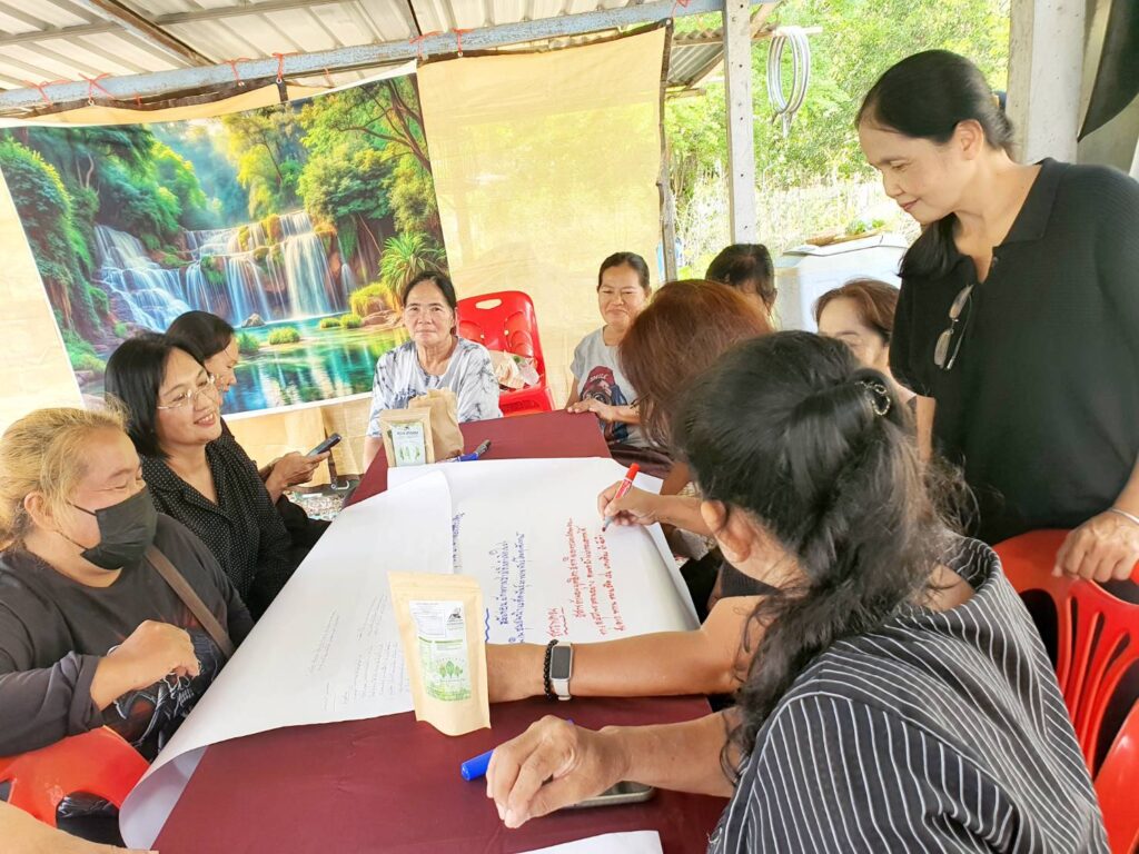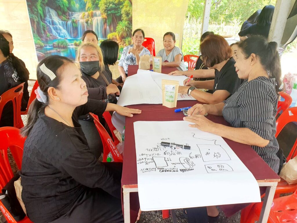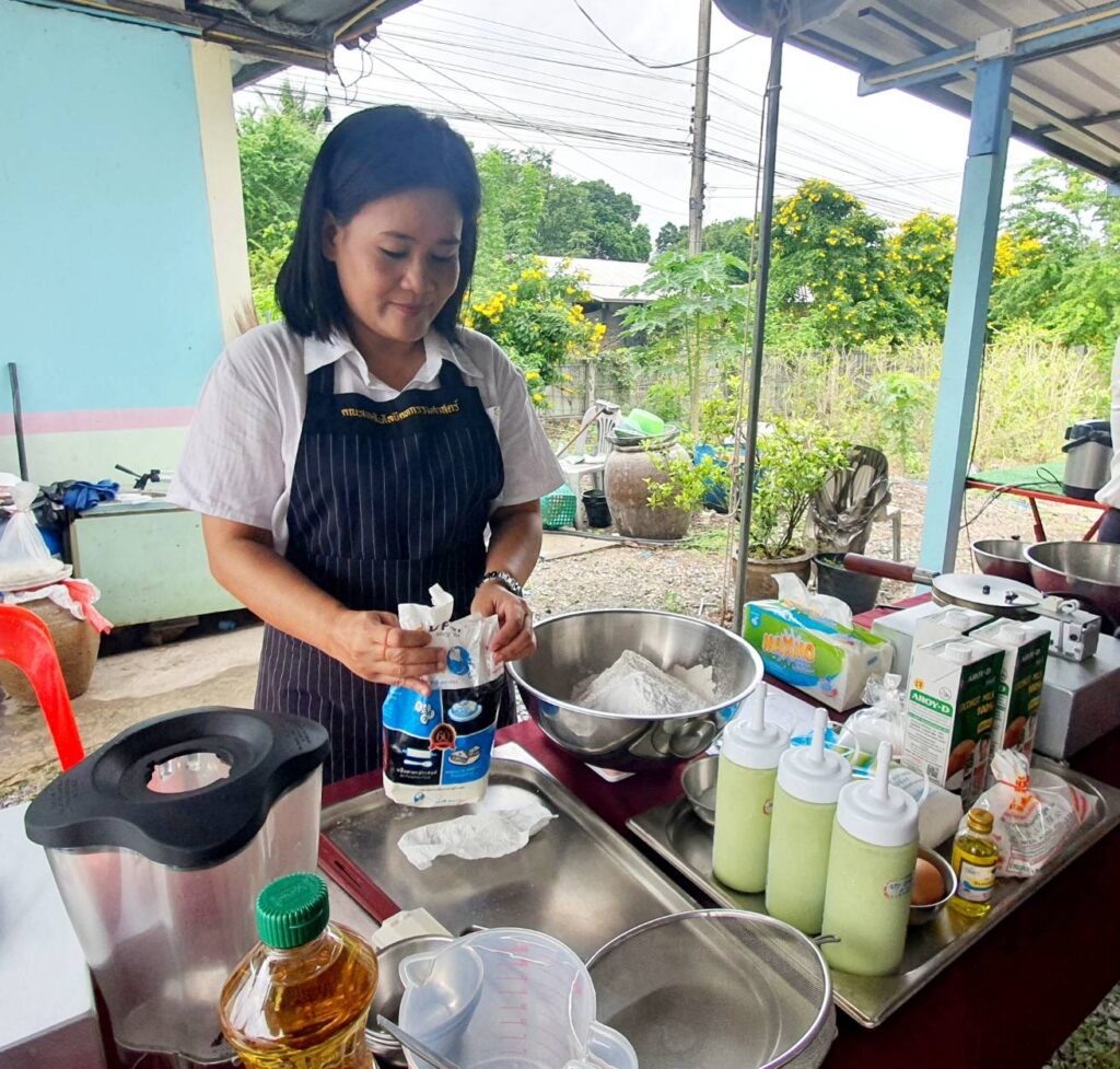 โอกาสนี้ คณาจารย์ได้สาธิตวิธีและให้สมาชิกวิสาหกิจชุมชนฯ ได้ร่วมกันทดลองทำผักหวานป่าแผ่นทอดกรอบปรุงรส และทองม้วนผักหวานป่า เพื่อสร้างมูลค่าเพิ่มภายใต้แบรนด์สินค้า “หวานกรอบ” รวมทั้งถ่ายทอดองค์ความรู้เรื่องการคิดต้นทุนราคาสินค้า การเขียน Story Telling ที่มาของสินค้า รวมทั้งการจำหน่ายสินค้าผ่านช่องทางออนไลน์ต่าง ๆ นอกจากนี้ ยังได้ให้การสนับสนุนอุปกรณ์ ได้แก่ เตาอบ เครื่องทำทองม้วน และบรรจุภัณฑ์พร้อมฉลากสินค้าให้กับทางกลุ่ม รวมทั้งเตรียมพัฒนาผลิตภัณฑ์ใหม่ ๆ ให้ตรงตามความต้องการของวิสาหกิจชุมชน เพื่อยกระดับและสร้างรายได้ให้กับชุมชนต่อไป