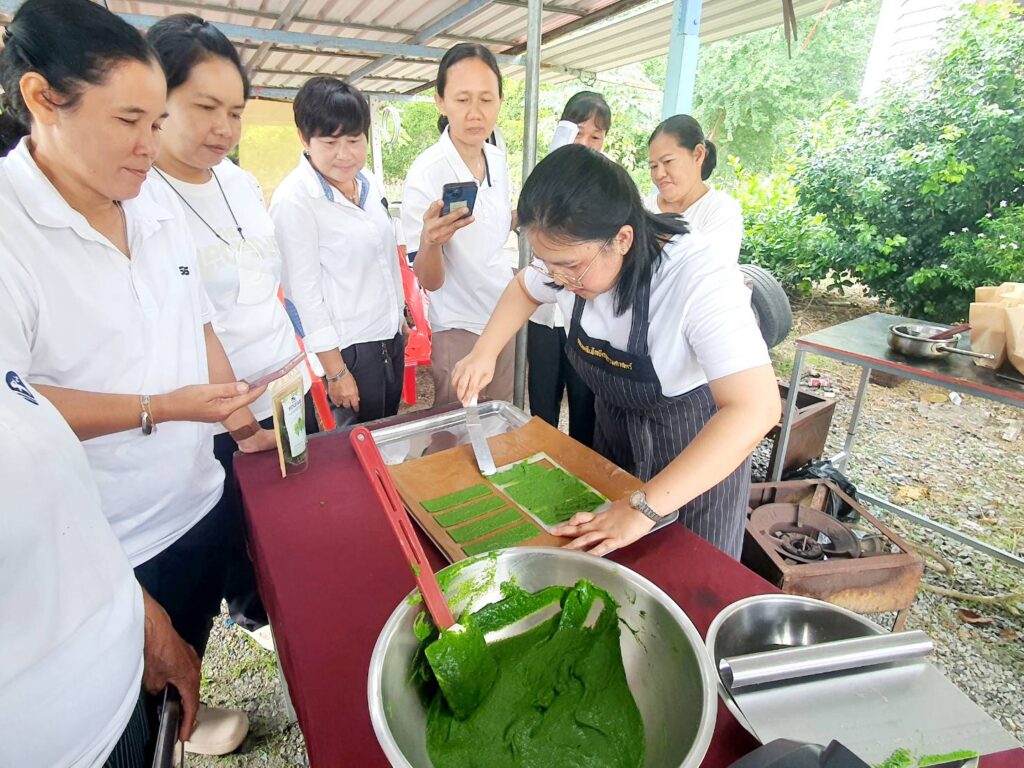ในระหว่างวันที่ 8-9 พฤศจิกายน 2568 นางสาวอัจฉรา สุขสมบูรณ์ เกษตรอำเภอบ้านหมอ พร้อมด้วย นายสมภพ คำภักดี ผู้แทนปศุสัตว์อำเภอบ้านหมอ และนายสถิตย์ สัมฤทธิ์เปี่ยม ประธานวิสาหกิจชุมชนกลุ่มแปรรูปผักหวานป่าบ้านคลองกระโดน เข้าร่วมกิจกรรมและให้การต้อนรับคณาจารย์ จากคณะเทคโนโลยีคหกรรมศาสตร์ มหาวิทยาลัยเทคโนโลยีราชมงคลพระนคร ศูนย์โชติเวช นำโดย ผศ.ดร.ศันสนีย์ ทิมทอง ในโอกาสที่ได้เข้ามาศึกษาวิจัยและจัดทำโครงการยกระดับและเพิ่มขีดความสามารถด้วยนวัตกรรมการจัดการแปรรูปผลิตภัณฑ์ผักหวานป่าสู่การแข่งขันเชิงพาณิชย์ โดยมีวัตถุประสงค์เพื่อ 1. ศึกษาศักยภาพและสำรวจความต้องการของชุมชนในการแปรรูปผลิตภัณฑ์ผักหวานป่า 2. เพื่อแปรรูปผลิตภัณฑ์ด้วยนวัตกรรมผลิตภัณฑ์จากผักหวานป่าให้ได้มาตรฐาน 3. เพื่อศึกษารูปแบบการบริหารจัดการด้วยนวัตกรรมกระบวนการของวิสาหกิจชุมชน และ 4. เพื่อยกระดับและเพิ่มขีดความสามารถในเชิงพาณิชย์ด้วยนวัตกรรมบริการผลิตภัณฑ์แปรรูปจากผักหวานป่า ณ ที่ทำการวิสาหกิจชุมชนกลุ่มแปรรูปผักหวานป่าบ้านคลองกระโดน หมู่ที่ 1 ตำบลสร่างโศก อำเภอบ้านหมอ จังหวัดสระบุรี