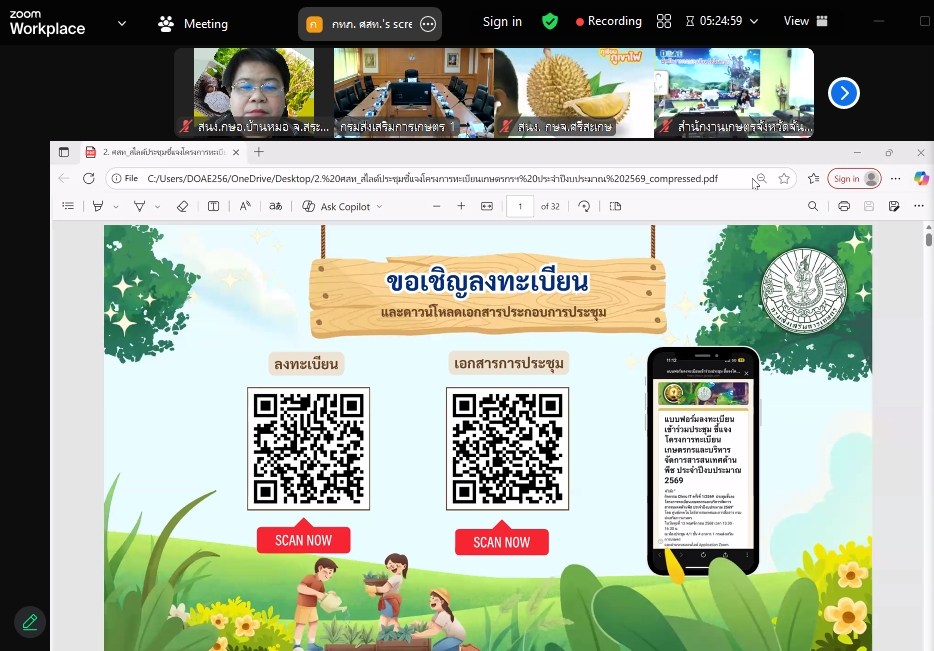 วันพฤหัสบดี ที่ 13 พฤศจิกายน 2568 นางสาวอัจฉรา สุขสมบูรณ์ เกษตรอำเภอบ้านหมอ และเจ้าหน้าที่สำนักงานเกษตรอำเภอบ้านหมอ เข้าร่วมกิจกรรมแลกเปลี่ยนเรียนรู้ Clinic IT ครั้งที่ 1 ประชุมชี้แจงโครงการทะเบียนเกษตรและสารสนเทศด้านพืช ประจำปีงบประมาณ 2569 ผ่านระบบ Application Zoom โดยมีนายครองศักดิ์ สงรักษา รองอธิบดีกรมส่งเสริมการเกษตร เป็นประธานการประชุม มีเรื่องที่เสนอให้ที่ประชุมทราบดังนี้ เป้าหมายและงบประมาณในการดําเนินงาน ประจําปีงบประมาณ 2569 มีดังนี้ 1. เป้าหมายและงบประมาณในการดําเนินงาน ประจําปีงบประมาณ 2569 – การขึ้นทะเบียนและปรับปรุงทะเบียนเกษตรกร-การจัดทําผังแปลงเกษตรกรรมดิจิทัล 2.2. (ร่าง) ตัวชี้วัดการจัดทําผังแปลงเกษตรกรรมดิจิทัล ปีงบประมาณ 2569 รอบ 1 และรอบ 2 3. แนะนําการใช้งานระบบวาดผังแปลงเกษตรกรรมดิจิทัล 4. แผนการติดตามนิเทศงานและสุ่มตรวจสอบผลการวาดผังแปลงเกษตรกรรมดิจิทัล