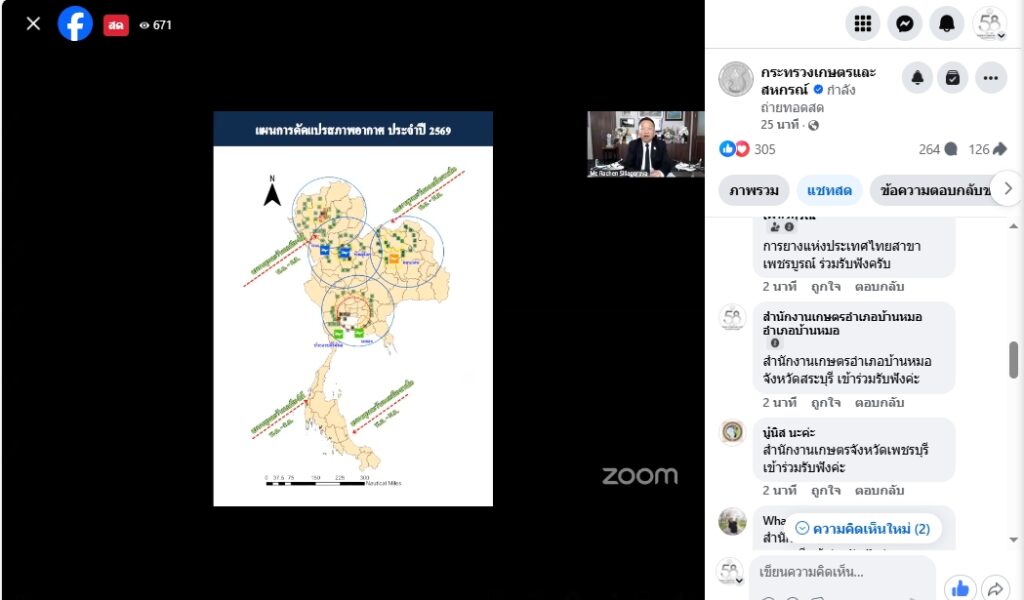 วันที่ 18 พฤศจิกายน 2568 นางสาวอัจฉรา สุขสมบูรณ์ เกษตรอำเภอบ้านหมอ พร้อมด้วย นางสาวกมลรัตน์ สุขสถาน นักวิชาการส่งเสริมการเกษตรชำนาญการพิเศษ สำนักงานเกษตรอำเภอบ้านหมอ เข้าร่วมรับชม Facebook Live : กระทรวงเกษตรและสหกรณ์ รายการ “อัปเดต เกษตรนำ” เรื่อง สถานการณ์และการเตรียมความพร้อมรับมือปัญหาหมอกควันฝุ่นละออง PM 2.5 และมาตรการลดเผาในพื้นที่เกษตร โดยมีนายพีรพันธ์ คอทอง อธิบดีกรมส่งเสริมการเกษตร ร่วมบรรยายพิเศษและกล่าวถึงการขับเคลื่อนงานของกรมส่งเสริมการเกษตรตามแนวทางการเตรียมความพร้อมเพื่อรับมือปัญหาหมอกควันฝุ่นละออง PM 2.5 และมาตรการลดเผาในพื้นที่เกษตร ในการหาทางออกร่วมกับเกษตรกร ในการจัดการวัสดุเหลือใช้ทางการเกษตร และการทำงานร่วมกับชุมชน ปลอดการเผา และนายราเชน ศิลปะรายะ อธิบดีกรมฝนหลวงและการบินเกษตร กล่าวถึงการดำเนินงานของกรมฝนหลวงฝนหลวงและการบินเกษตร เพื่อร่วมแก้ไขปัญหาดังกล่าว ณ สำนักงานเกษตรอำเภอบ้านหมอ ตำบลบางโขมด อำเภอบ้านหมอ จังหวัดสระบุรี