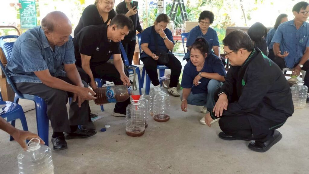 วันพฤหัสบดีที่ 15 มกราคม 2569 นายจิรวิทย์ เฮงหิรัญญวงษ์ ผู้อำนวยการกลุ่มจัดการฟาร์มและเกษตรกรรมยั่งยืน กรมส่งเสริมการเกษตร พร้อมด้วยนางปริษา จีราพันธ์ นักวิชาการเกษตรชำนาญการ เจ้าหน้าที่สำนักงานส่งเสริมและพัฒนาการเกษตรที่ 1 จังหวัดชัยนาท เยี่ยมเยียนและติดตามโครงการระบบส่งเสริมเกษตรแบบแปลงใหญ่เพื่อปรับเพิ่มผลิตภาพการผลิต โดยมีวัตถุประสงค์เพื่อส่งเสริมการพัฒนาเกษตรกรรมที่ยั่งยืน และเหมาะสมกับพื้นที่เกษตรกรรมตามบริบทต่างๆ และพัฒนาเกษตรกรให้มีความรู้เกษตรกรรมยั่งยืน ในการปรับเปลี่ยนพื้นที่เกษตรกรรมของตนเองได้อย่างเหมาะสม ณ แปลงต้นแบบเกษตรกรรมยั่งยืน ของนายปราโมทย์ กิจปลื้ม หมู่ที่ 5 ตำบลไผ่ขวาง อำเภอบ้านหมอ จังหวัดสระบุรี ในการนี้นางสาวสุทิน หิรัญอ่อน หัวหน้ากลุ่มส่งเสริมและพัฒนาการผลิต เจ้าหน้าที่กลุ่มส่งเสริมและพัฒนาการผลิต สำนักงานเกษตรจังหวัดสระบุรี และนางสาวอัจฉรา สุขสมบูรณ์ เกษตรอำเภอบ้านหมอ พร้อมด้วยเจ้าหน้าที่สำนักงานเกษตรอำเภอบ้านหมอ ร่วมจัดกิจกรรมฯ โดยเวทีถ่ายทอดความรู้ในวันนี้ ประกอบด้วย การบรรยายในหัวข้อเรื่อง คาร์บอนเครดิต การบรรยายและฝึกปฏิบัติเรื่องการทำจุลินทรีย์สังเคราะห์แสง และการทำจุลินทรีย์เก้าเซียน เพื่อนำไปใช้ในการลดต้นทุนการผลิตพืช