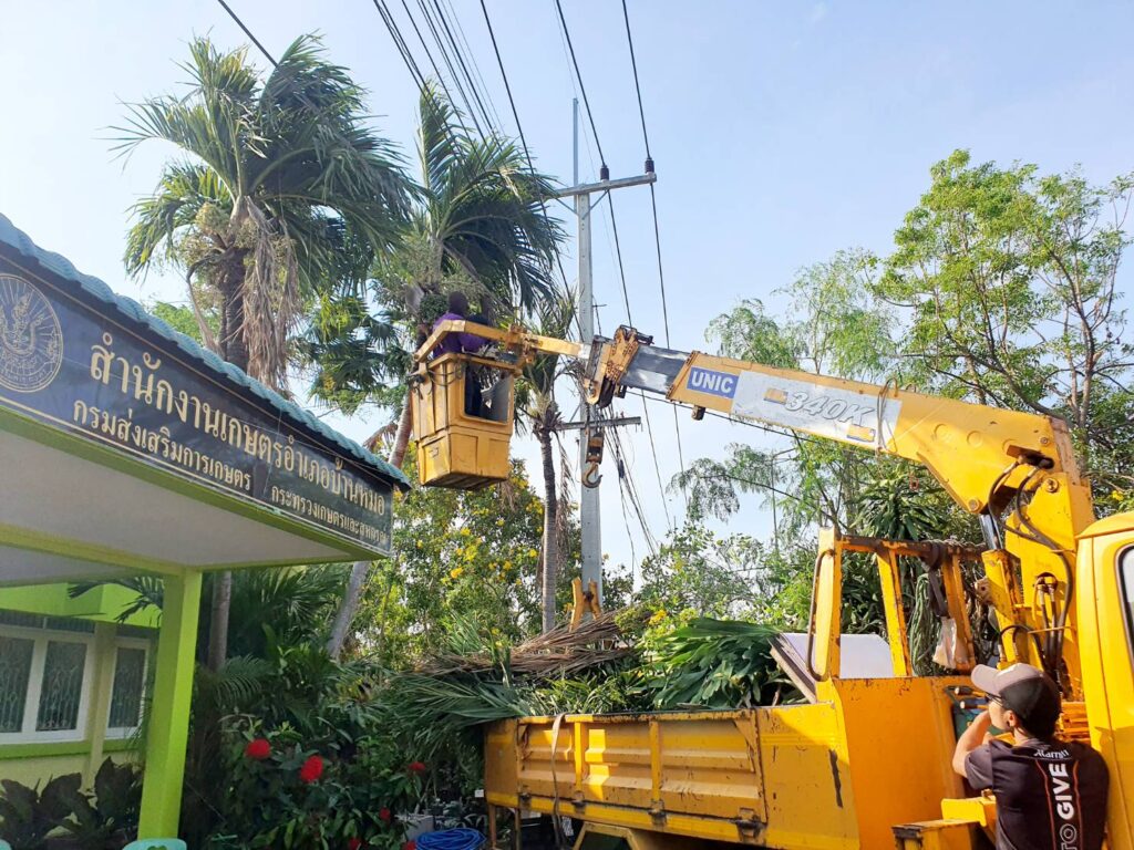 วันพุธที่ 28 มกราคม 2569 สำนักงานเกษตรอำเภอบ้านหมอ ได้รับความอนุเคราะห์จากคุณธนภาสน์ ปัญญากาวิน นายกเทศมนตรีตำบลบางโขมด อำเภอบ้านหมอ จังหวัดสระบุรี มอบหมายให้ เจ้าหน้าที่กองช่าง เทศบาลตำบลบางโขมด ตัดต้นไม้ที่พาดผ่านสายไฟฟ้าและซ่อมแซมหลอดไฟส่องสว่างบริเวณด้านหน้าอาคารสำนักงานเกษตรอำเภอบ้านหมอ เพื่อความปลอดภัยเป็นการป้องกันพายุในช่วงฤดูร้อน และทำให้เกิดความเป็นระเบียบเรียบร้อย รวมทั้งปรับปรุงภูมิทัศน์ให้สวยงาม ณ สำนักงานเกษตรอำเภอบ้านหมอ หมู่ที่ 8 ตำบลบางโขมด อำเภอบ้านหมอ จังหวัดสระบุรี ทางสำนักงานเกษตรอำเภอบ้านหมอ ขอขอบพระคุณเป็นอย่างสูงมา ณ โอกาสนี้