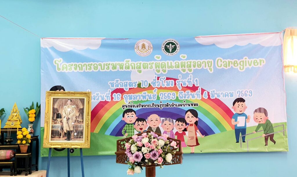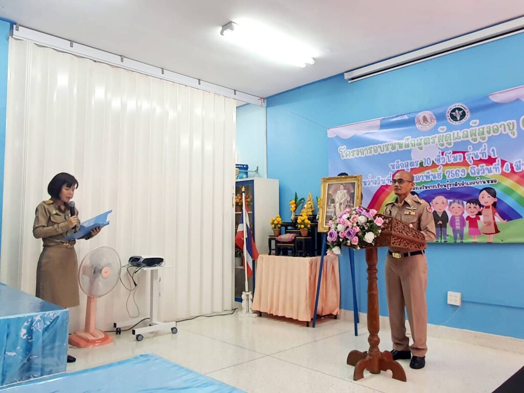 วันที่ 16 กุมภาพันธ์ 2569 เวลา 09.00 น. นายมนตรี ปรีดา นายอำเภอบ้านหมอ เป็นประธานในพิธีเปิดโครงการอบรมหลักสูตรผู้ดูแลผู้สูงอายุ หลักสูตร 70 ชั่วโมง Caregiver ซึ่งโครงการดังกล่าวศูนย์ส่งเสริมการเรียนรู้ระดับอำเภอบ้านหมอจัดขึ้นเพื่อให้ผู้เข้ารับการอบรมผู้ดูแลผู้สูงอายุได้มีความรู้ ความเข้าใจ เรื่องการดูแลสุขภาพอนามัยของผู้สูงอายุและปฏิบัติต่อผู้สูงอายุได้อย่างมีประสิทธิภาพ ตลอดจนมีความรู้ ความสามารถในการดูแลช่วยเหลือ ฟื้นฟูสมรรถภาพผู้สูงอายที่มีภาวะพึ่งพิงได้ โอกาสนี้ นางสาวอัจฉรา สุขสมบูรณ์ เกษตรอำเภอบ้านหมอ พร้อมด้วย หัวหน้าส่วนราชการอำเภอบ้านหมอ สมาชิกสภาองค์การบริหารส่วนจังหวัดสระบุรี เขต 1 กำนัน ผู้ใหญ่บ้าน ตำบลตลาดน้อย เข้าร่วมในพิธีเปิดโครงการฯ ดังกล่าว ณ ห้องประชุม รพ.สต.ตลาดน้อย หมู่ที่ 4 ตำบลตลาดน้อย อำเภอบ้านหมอ จังหวัดสระบุรี