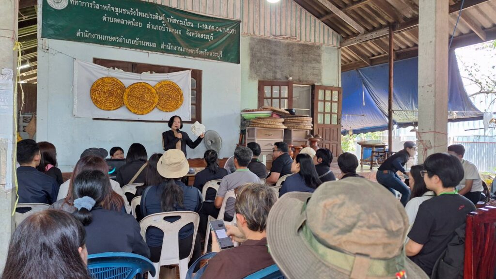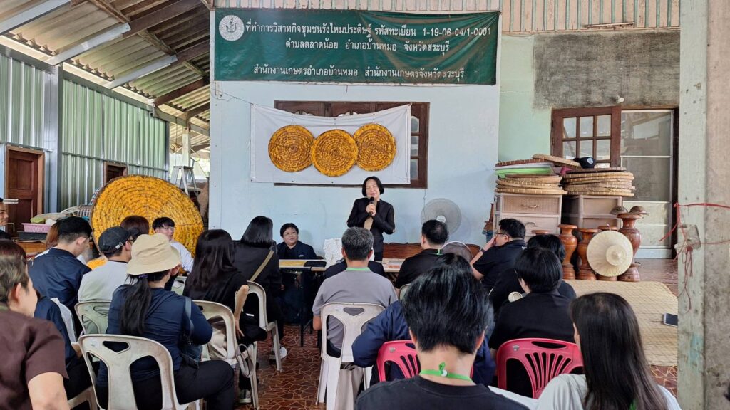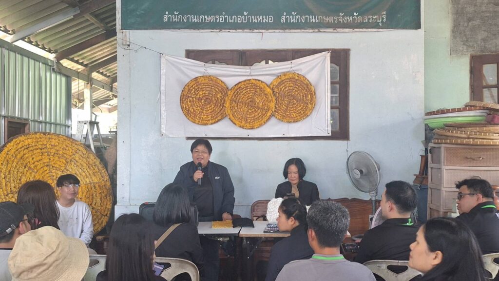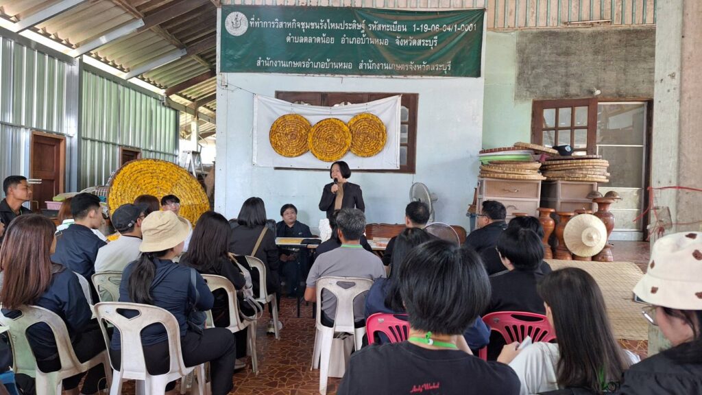 วันที่ 20 กุมภาพันธ์ 2569 เวลา 12.00 น. นางสาวอัจฉรา สุขสมบูรณ์ เกษตรอำเภอบ้านหมอ พร้อมด้วยเจ้าหน้าที่สำนักงานเกษตรอำเภอบ้านหมอ ร่วมต้อนรับคณะศึกษาดูงานโครงการฝึกอบรมหลักสูตร นักบริหารการพัฒนาการเกษตรและสหกรณ์ ระดับต้น รุ่นที่ 79 (นบต.79) สถาบันเกษตราธิการ กระทรวงเกษตรและสหกรณ์ จำนวน 50 คน ณ วิสาหกิจชุมชนรังไหมประดิษฐ์ หมู่ที่ 6 ตำบลตลาดน้อย อำเภอบ้านหมอ จังหวัดสระบุรี