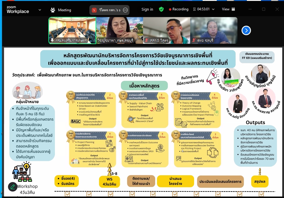 วันที่ 4 มีนาคม 2569 นางสาวอัจฉรา สุขสมบูรณ์ เกษตรอำเภอบ้านหมอ เข้าร่วมรับฟังการชี้แจงแนวทางการสมัครเข้ารับการพัฒนาศักยภาพเจ้าหน้าที่ หลักสูตรพัฒนานักบริหารจัดการโครงการวิจัยเชิงบูรณาการเชิงพื้นที่ เพื่อออกแบบและขับเคลื่อนโครงการที่นำไปสู่การใช้ประโยชน์และผลกระทบเชิงพื้นที่ ภายใต้โครงการ “การพัฒนาระบบการบริหารจัดการโครงการวิจัยเชิงบูรณาการของพื้นที่ในการส่งเสริมและถ่ายทอดเทคโนโลยีที่เหมาะสมสู่การใช้ประโยชน์ ผ่านการประชุมระบบออนไลน์ Zoom Meeting ดำเนินการจัดประชุมโดยกองวิจัยและพัฒนางานส่งเสริมการเกษตร กรมส่งเสริมการเกษตร
