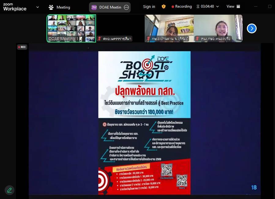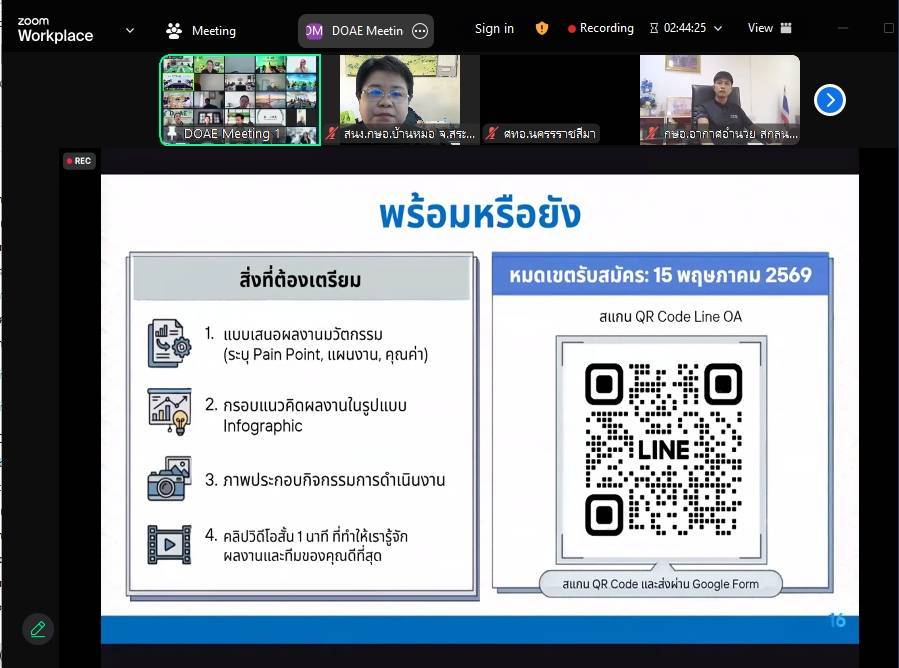 วันที่ 7 เมษายน 2569 นางสาวอัจฉรา สุขสมบูรณ์ เกษตรอำเภอบ้านหมอ พร้อมด้วย เจ้าหน้าที่สำนักงานเกษตรอำเภอบ้านหมอ เข้าร่วม ประชุมรับฟังการชี้แจงโครงการเพิ่มประสิทธิภาพงานส่งเสริมการเกษตรด้วยเทคโนโลยีและนวัตกรรม โดยมีคณะผู้บริหารกรมส่งเสริมการเกษตรร่วมชี้แจงโครงการดังกล่าว เพื่อพัฒนาเจ้าหน้าที่ให้มีศักยภาพในการจัดการงานส่งเสริมการเกษตรทั้งในมิติพื้นที่-คน-สินค้า สามารถนำเทคโนโลยีที่ดีและเหมาะสมมาใช้ในการเพื่อประสิทธิภาพในการทำงาน ผ่านการประชุมระบบออนไลน์ (Zoom Meeting) ณ สำนักงานเกษตรอำเภอบ้านหมอ ตำบลบางโขมด อำเภอบ้านหมอ จังหวัดสระบุรี
