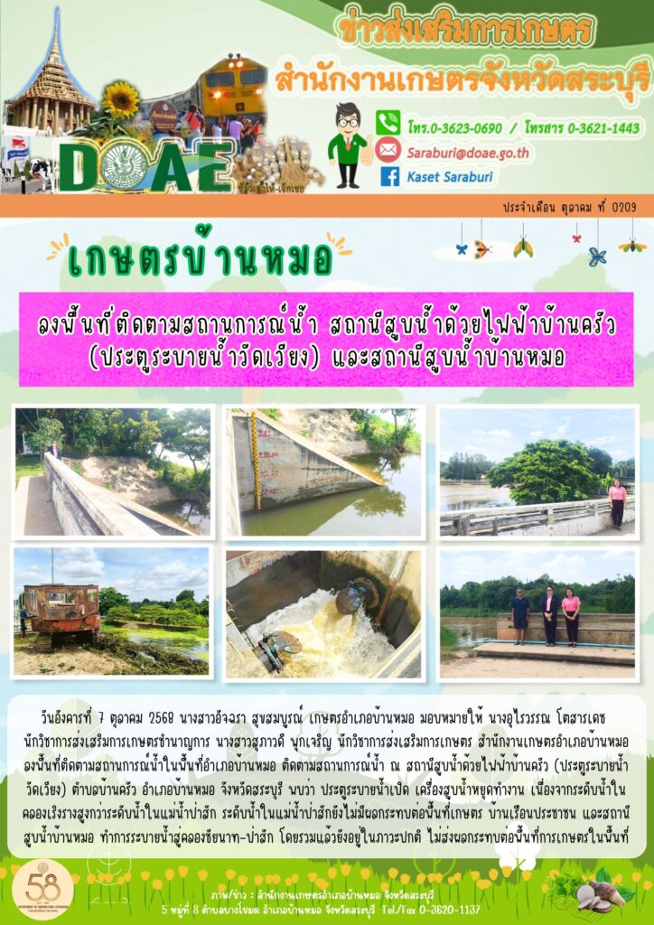 เกษตรบ้านหมอ ลงพื้นที่ติดตามสถานการณ์น้ำ สถานีสูบน้ำด้วยไฟฟ้าบ้านครัว (ประตูระบายน้ำวัดเวียง) และสถานีสูบน้ำบ้านหมอBy banmo / 09/10/2025