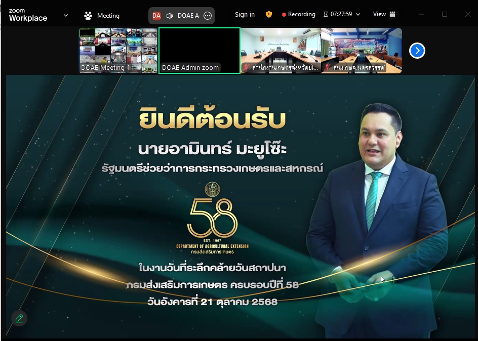 วันอังคารที่ 21 ตุลาคม 2568 นางสาวอัจฉรา สุขสมบูรณ์ เกษตรอำเภอบ้านหมอ พร้อมด้วยเจ้าหน้าที่สำนักงานเกษตรอำเภอบ้านหมอ เข้าร่วมรับฟังนโยบายจากรองนายกรัฐมนตรี และรัฐมนตรีว่าการกระทรวงเกษตรและสหกรณ์ ผ่านช่องทางออนไลน์ Zoom Meeting โดยนายอามินทร์ มะยูโซ๊ะ รัฐมนตรีช่วยว่าการกระทรวงเกษตรและสหกรณ์ และผู้บริหารกรมส่งเสริมการเกษตร ณ สำนักงานเกษตรอำเภอบ้านหมอ ตำบลบางโขมด อำเภอบ้านหมอ จังหวัดสระบุรี