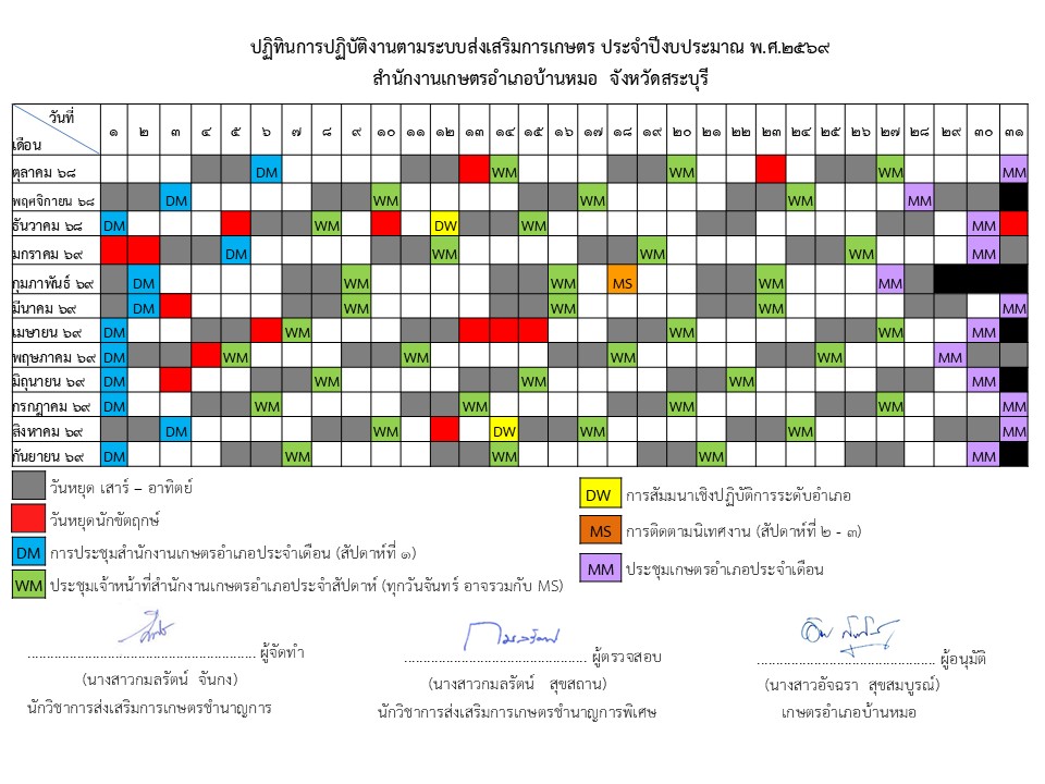 ปฏิทินการปฏิบัติงานตามระบบส่งเสริมการเกษตร