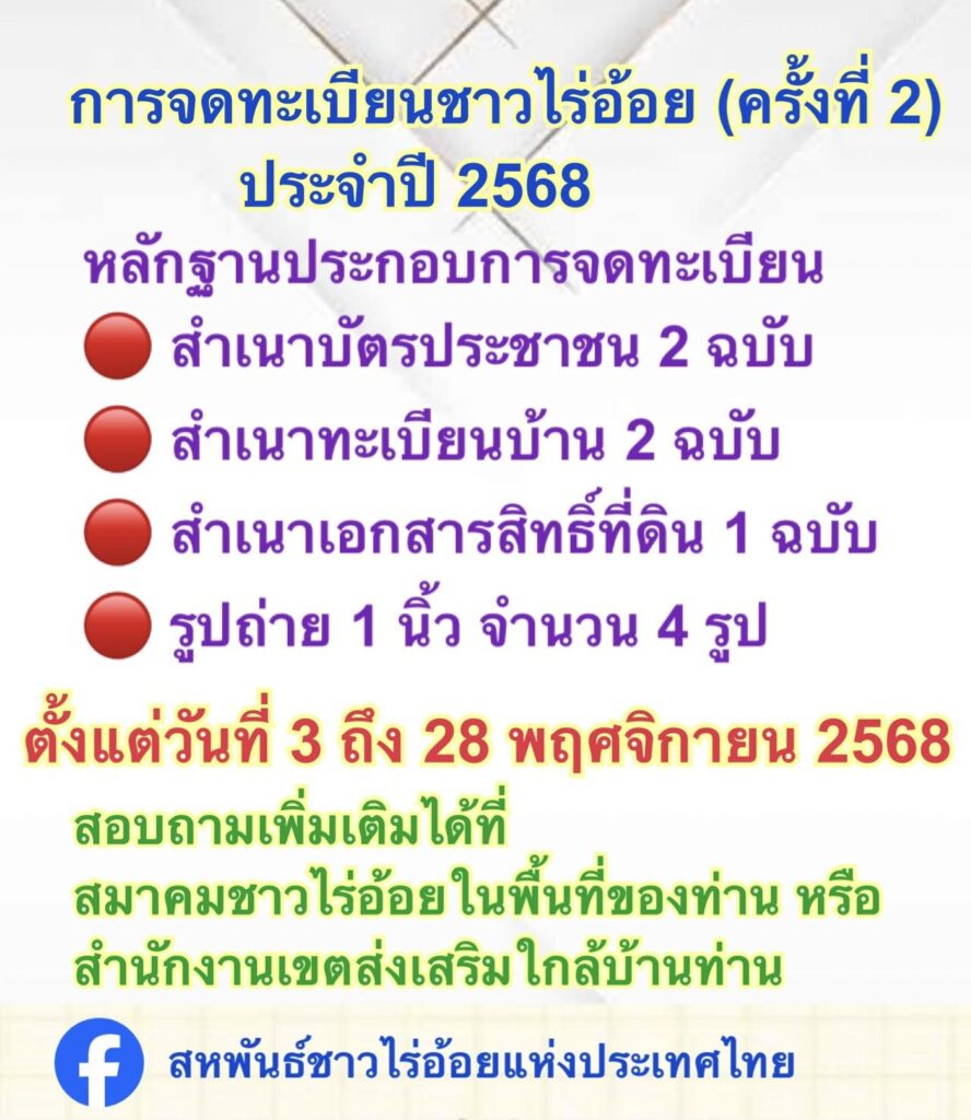 ประชาสัมพันธ์การรับจดทะเบียนชาวไร่อ้อย (ครั้งที่ 2) ประจำปี 2568 ตั้งแต่วันที่ 3 ถึง 28 พฤศจิกายน 2568By chaloemphrakiatsaraburi / 20/11/2025