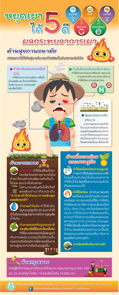 การหยุดเผาในพื้นที่การเกษตรหยุดเผาได้ 5 ดี สำนักงานเกษตรอำเภอดอนพุด / 18/12/2025 ผลกระทบจากการเผา ด้า