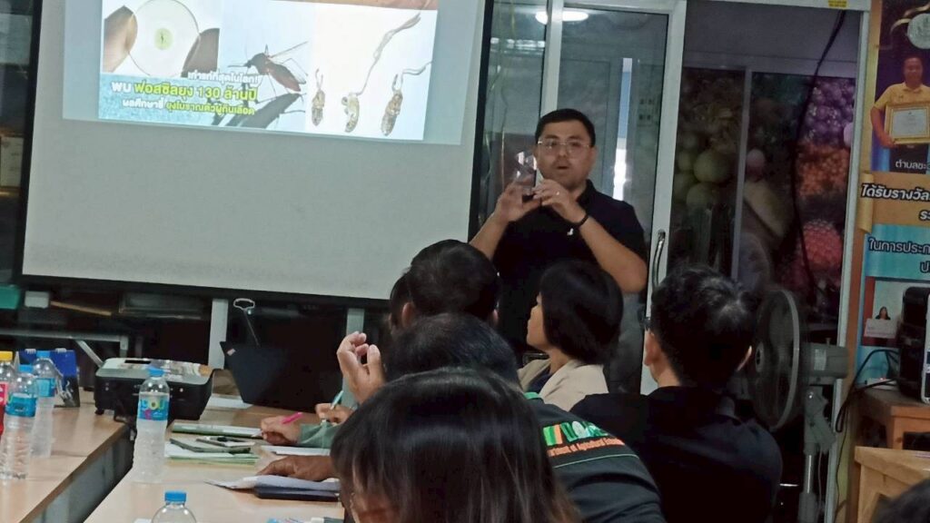 วันศุกร์ที่ 26 ธันวาคม พ.ศ. 2568 นายชาญชัย โฉมงาม เกษตรอำเภอดอนพุด มอบหมายให้ นางสาวปาริชาต สรีใส นักวิชาการส่งเสริมการเกษตรชำนาญการ เข้าร่วมโครงการส่งเสริมการจัดการสุขภาพพืชเพื่อเพิ่มประสิทธิภาพการผลิตสินค้าเกษตร กิจกรรม ติดตาม ประเมิน และรองรับการเผชิญเหตุการณ์ การระบาดของศัตรูพืช กิจกรรมสนับสนุนการวินิจฉัยและการจัดการศัตรูพืช เพื่ออบรมเรียนรู้ การวินิจฉัยศัตรูพืชเบื้องต้น การจำแนกศัตรูพืช ศัตรูธรรมชาติ การสุ่มสำรวจประเมินพื้นที่ระบาด รวมถึงการเรียนรู้ เรื่องการสาธิตการผลิต ชีวภัณฑ์ (เห็ดเรืองแสงสิรินรัศมี) พร้อมประเมินสถานการณ์การระบาดศัตรูพืช และวางแผนรับมือสถานการณ์การระบาดที่อาจเกิดขึ้น โดยมีวิทยากรจากศูนย์ส่งเสริมเทคโนโลยีการเกษตรด้านอารักขาพืช จังหวัดชัยนาท ณ วิสาหกิจชุมชนท่องเที่ยวเกษตรเชิงอนุรักษ์ชะอม จังหวัดสระบุรี
