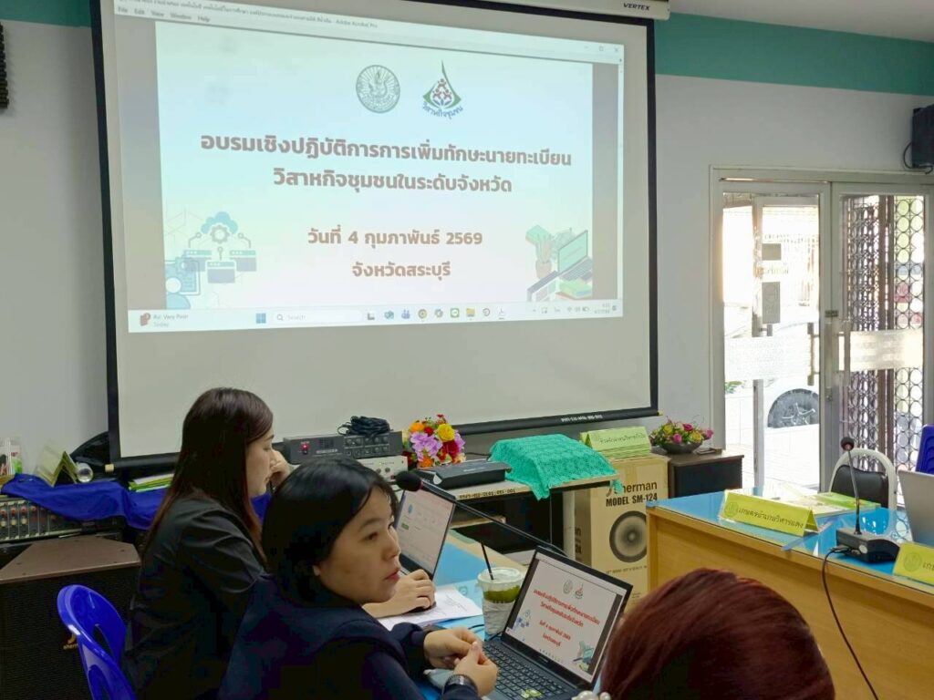 วันพุธที่ 4 กุมภาพันธ์ 2569 นายชาญชัย โฉมงาม เกษตรอำเภอดอนพุด พร้อมด้วย นางสาววันนิสา วงศ์ษา นักวิชาการส่งเสริมการเกษตร เข้าร่วมอบรมเชิงปฏิบัติการเพิ่มทักษะนายทะเบียนวิสาหกิจชุมชน ในโครงการส่งเสริมและพัฒนาผู้ประกอบการวิสาหกิจชุมชน เพื่อดำเนินการพัฒนาด้านทะเบียนวิสาหกิจชุมชนในระดับจังหวัด เสริมสร้างความรู้และความเข้าใจในการปฏิบัติงานสำหรับการบริหารจัดการด้านทะเบียนวิสาหกิจชุมชน โดยมีนายปรีชา สายแสง เกษตรจังหวัดสระบุรี เป็นประธานเปิดการฝึกอบรม และคณะเจ้าหน้าที่จากกองส่งเสริมวิสาหกิจชุมชน กรมส่งเสริมการเกษตร เป็นผู้บรรยายให้ความรู้ ณ ห้องประชุมสำนักงานเกษตรจังหวัดสระบุรี อำเภอปากเพรียว จังหวัดสระบุรี