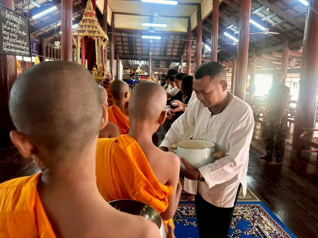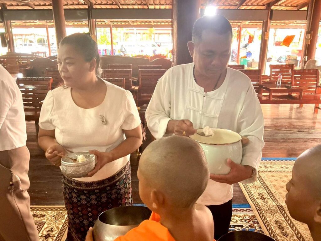 วันศุกร์ที่ 3 เมษายน 2569 เวลา 07.00 น. นางจิราภรณ์ กิ่งสีดา นายอำเภอดอนพุด มอบหมายให้นายชาญชัย โฉมงาม เกษตรอำภอดอนพุด ร่วมทำบุญตักบาตรถวายภัตรหารเช้า โดยมีพระครูสุนันทกิจโกศล เจ้าคณะอำเภอดอนพุด/เจ้าอาวาสวัดดอนทอง เป็นประธานฝ่ายสงฆ์ ในพิธีทำบุญตักบาตร/ฉันภัตตาหารเช้า พระภิกษุ สามเณร ตามโครงการบรรพชาสามเณรภาคฤดูร้อน ประจำปี 2569 เพื่อถวายเป็นพระราชกุศลแด่สมเด็จพระนางเจ้าสิริกิติ์ พระบรมราชินีนาถ พระบรมราชชนนีพันปีหลวง และถวายพระพรชัยมงคลเฉลิมพระเกียรติแด่พระบาทสมเด็จพระวชิรเกล้าเจ้าอยู่หัว สมเด็จพระนางเจ้าฯ พระบรมราชินีและสมเด็จพระกนิษฐาธิราชเจ้า กรมสมเด็จพระเทพรัตนราชสุดาฯ ณ วัดอ้อมแก้ว ตำบลไผ่หลิ่ว อำเภอดอนพุด จังหวัดสระบุรี โดยมีหัวหน้าส่วนราชการ ผู้บริหาร/เจ้าหน้าที่องค์กรปกครองส่วนท้องถิ่น กำนัน ผู้ใหญ่บ้าน แพทย์ประจำตำบล สารวัตรกำนัน ผู้ช่วยผู้ใหญ่บ้าน และประชาชนในพื้นที่ ร่วมในพิธีดังกล่าวโดยพร้อมเพรียงกัน