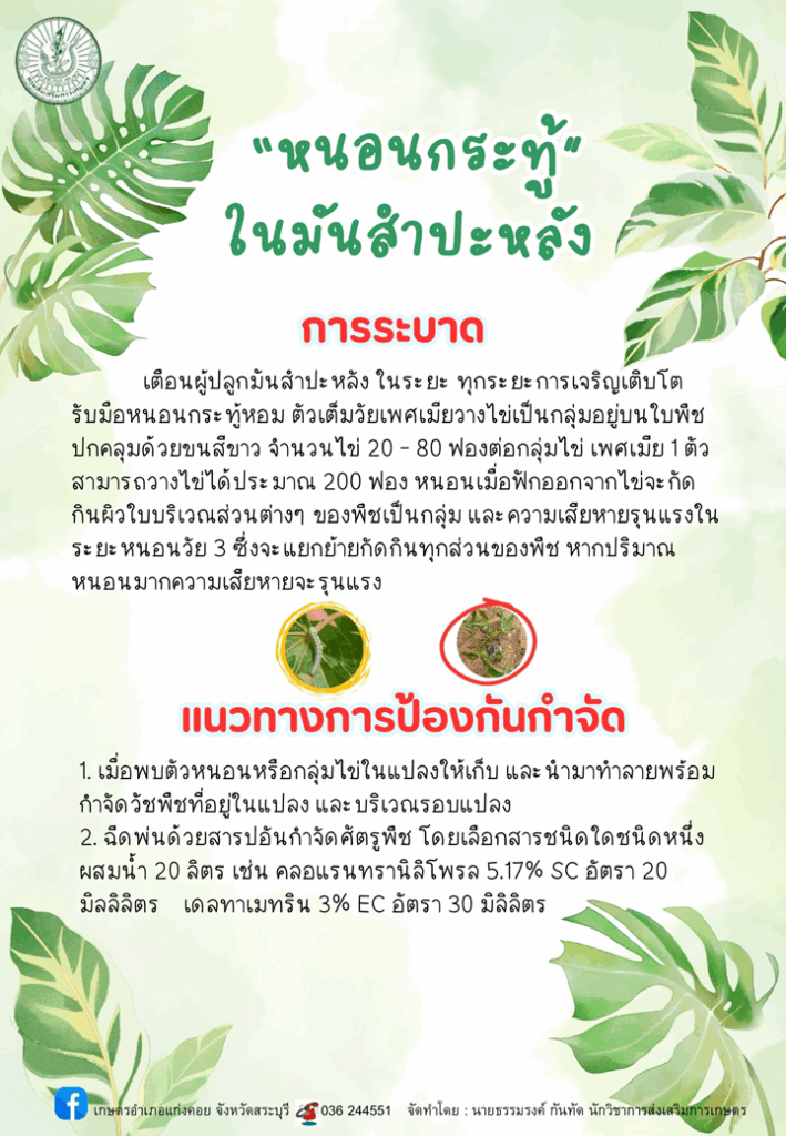 การจัดการโรคและแมลงศัตรูพืช, ข่าวเตือนการระบาดศัตรูพืชหนอนกระทู้ในมันสำปะหลัง สำนักงานเกษตรอำเภอแก่งคอย / 20/11/2025