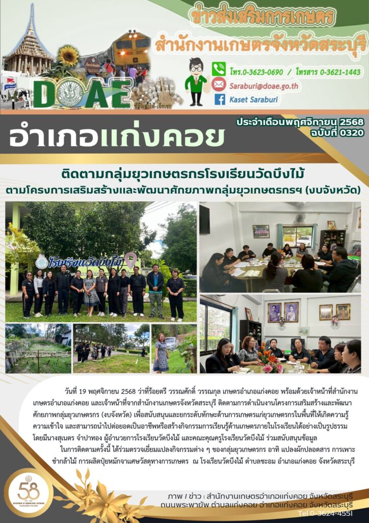 ติดตามกลุ่มยุวเกษตรกรโรงเรียนวัดบึงไม้ ตำบลชะอม อำเภอแก่งคอย จังหวัดสระบุรีBy สำนักงานเกษตรอำเภอแก่งคอย / 19/11/2025