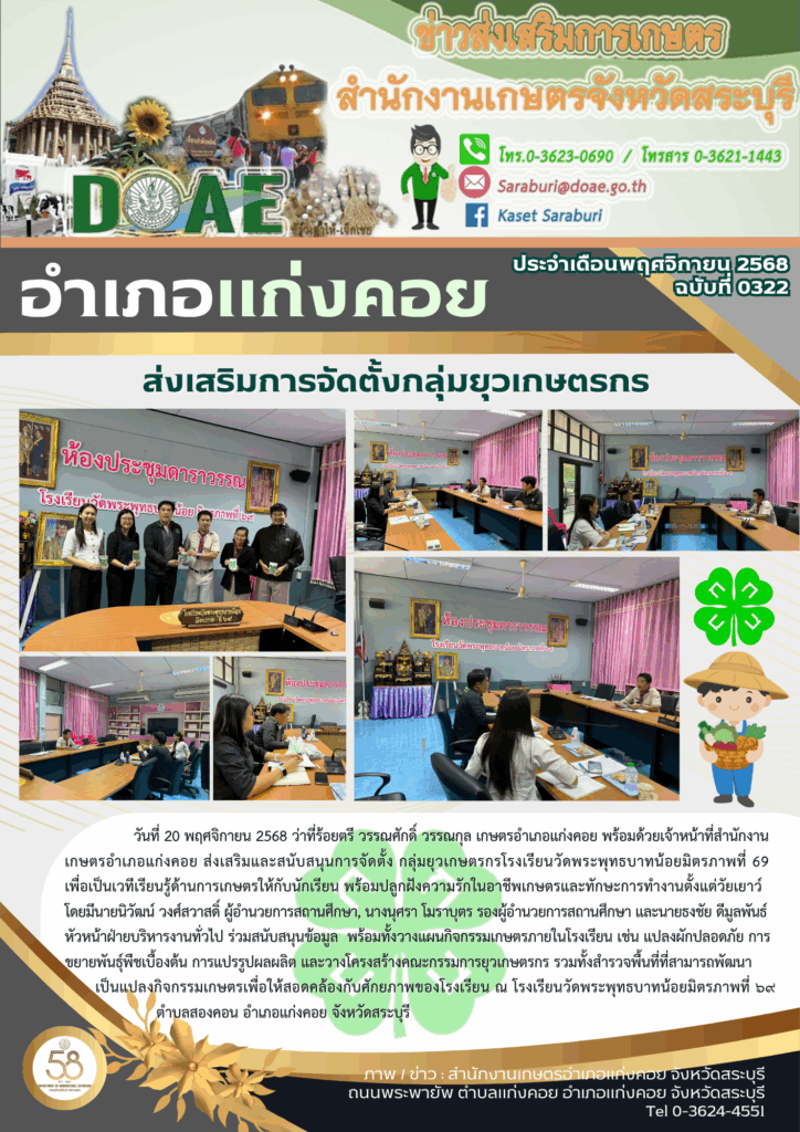 ส่งเสริมการจัดตั้งกลุ่มยุวเกษตรกร “โรงเรียนวัดพระพุทธบาทน้อย”By สำนักงานเกษตรอำเภอแก่งคอย / 20/11/2025